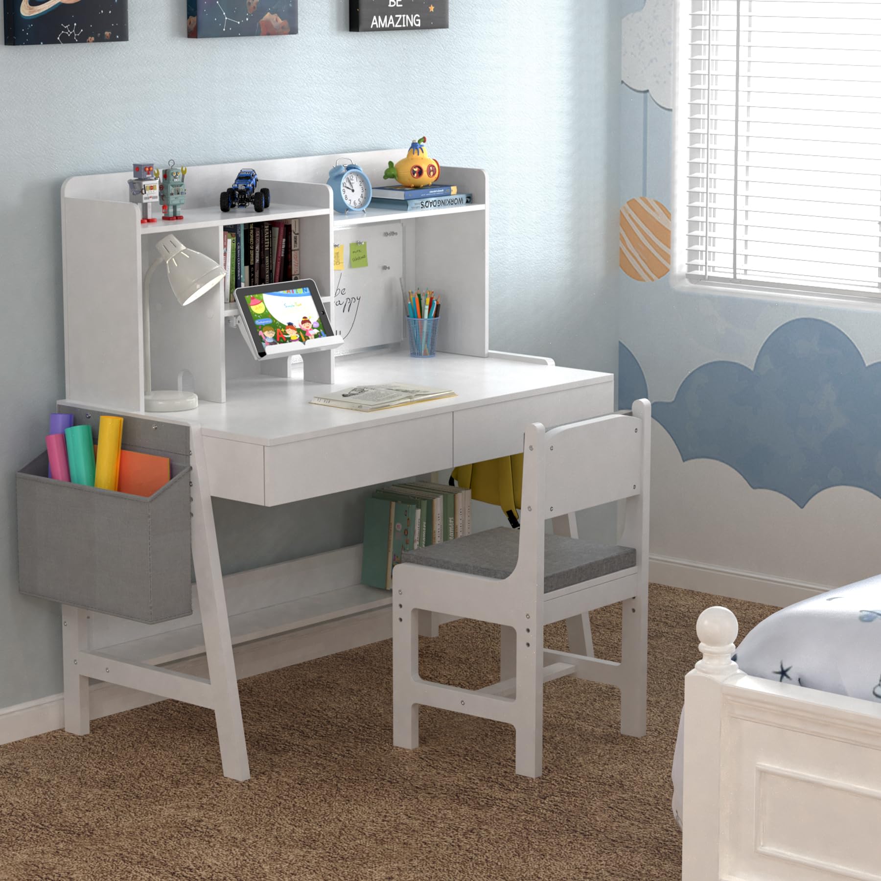 Kids Study Desk and Chair Set - Adjustable Height with Storage