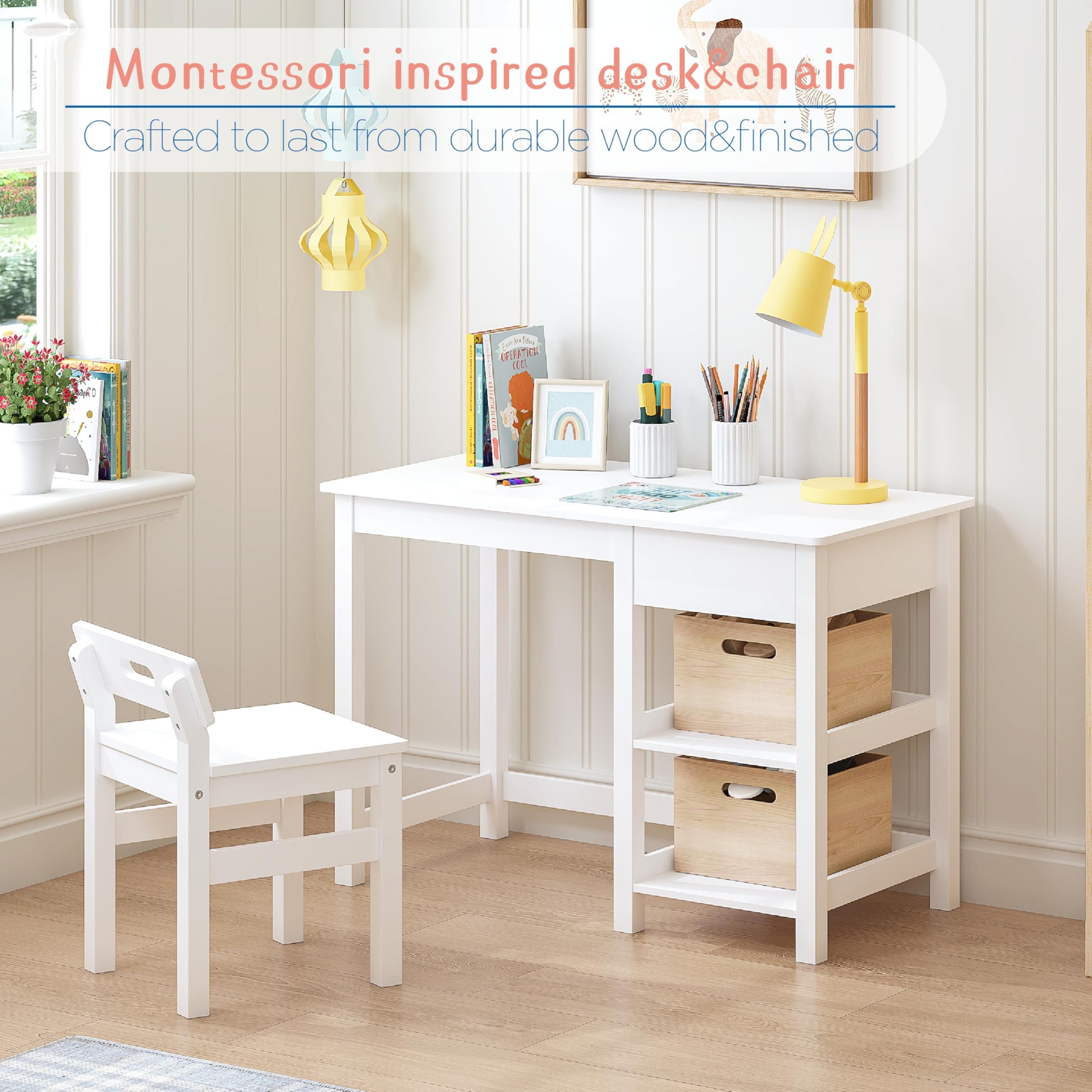 Kids Study Desk and Chair Set with Drawer and Shelves