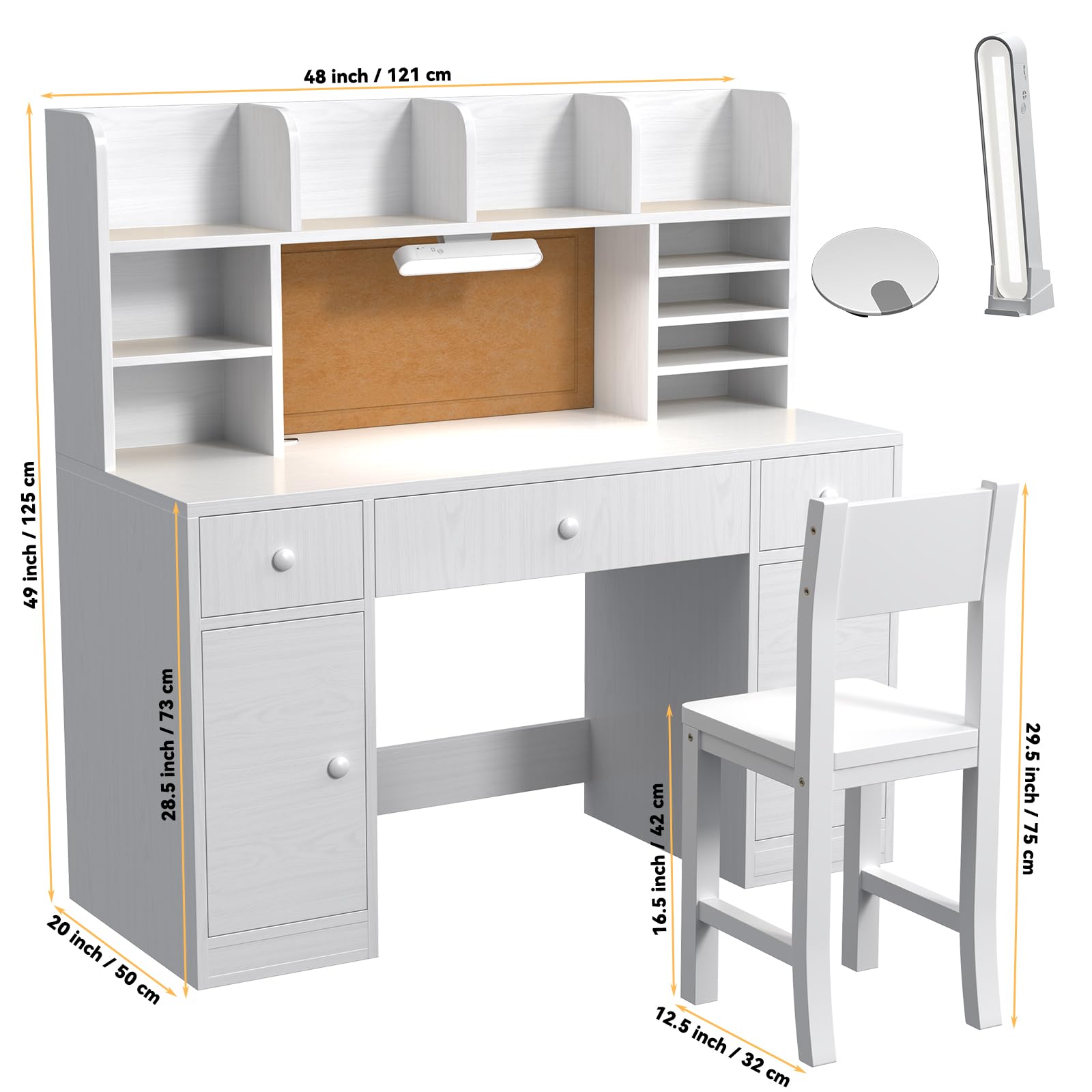 This comprehensive kids study desk and chair set provides the perfect workspace for homework, reading, drawing, and creative projects. Designed with both functionality and organization in mind, this set helps children develop good study habits while keeping their space tidy.