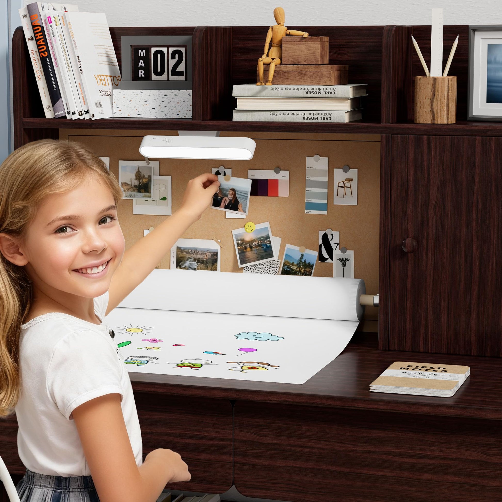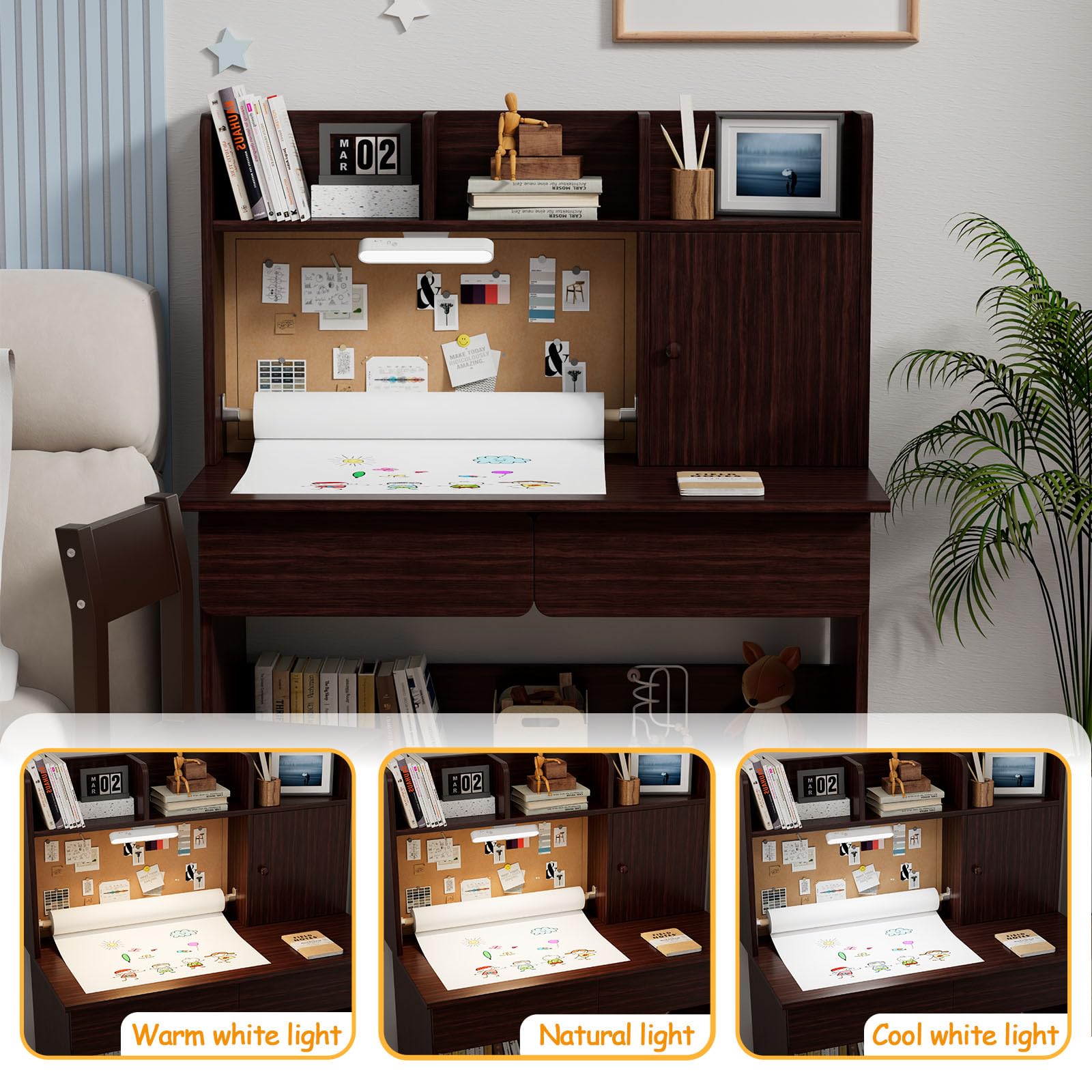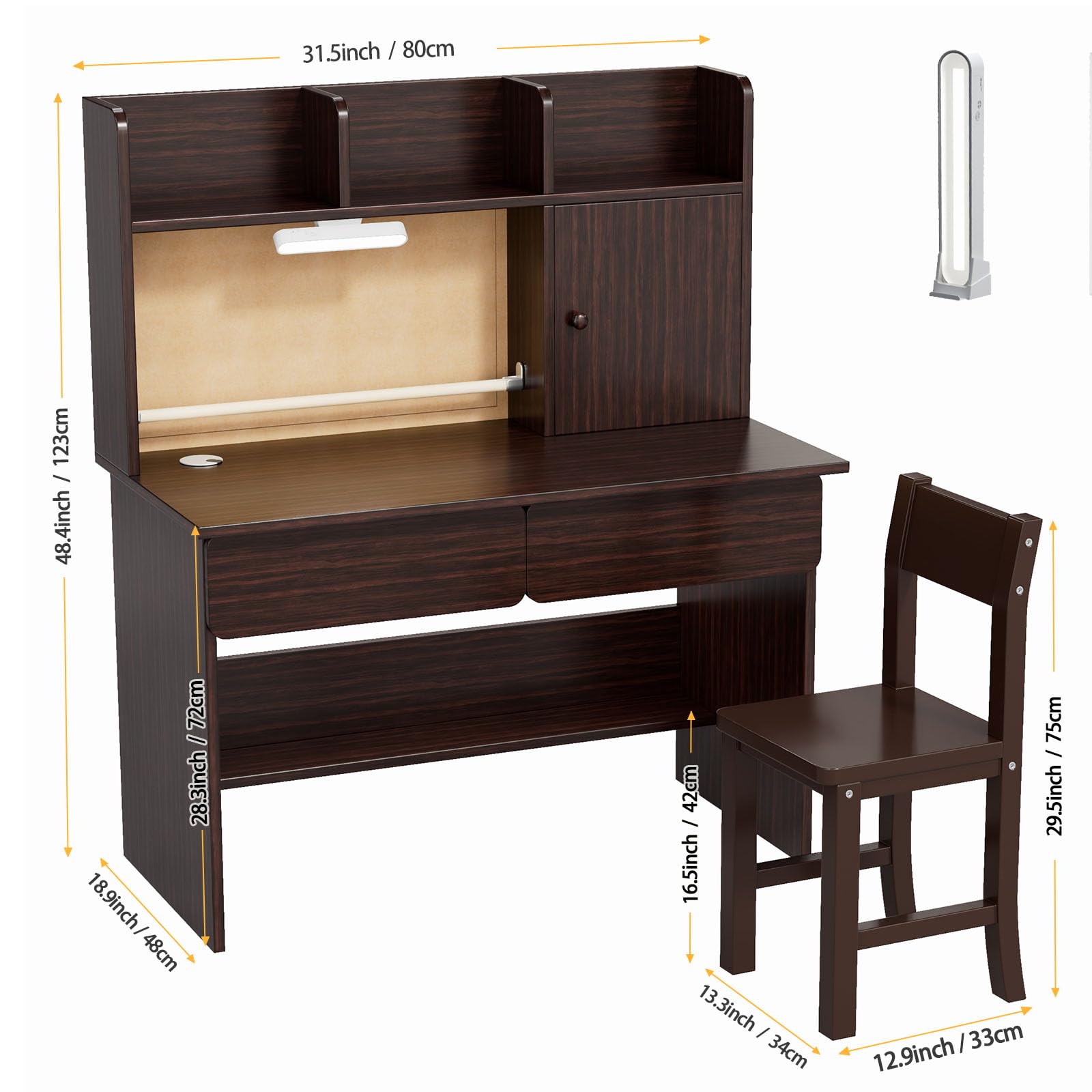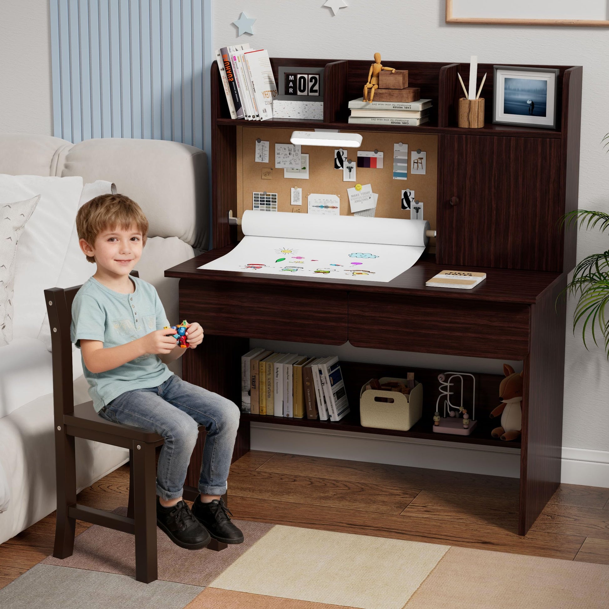 This functional kids study desk and chair set provides a dedicated workspace for children to study, read, and draw. Made of engineered wood with a solid pine wood chair, this furniture set combines durability with practical storage solutions.