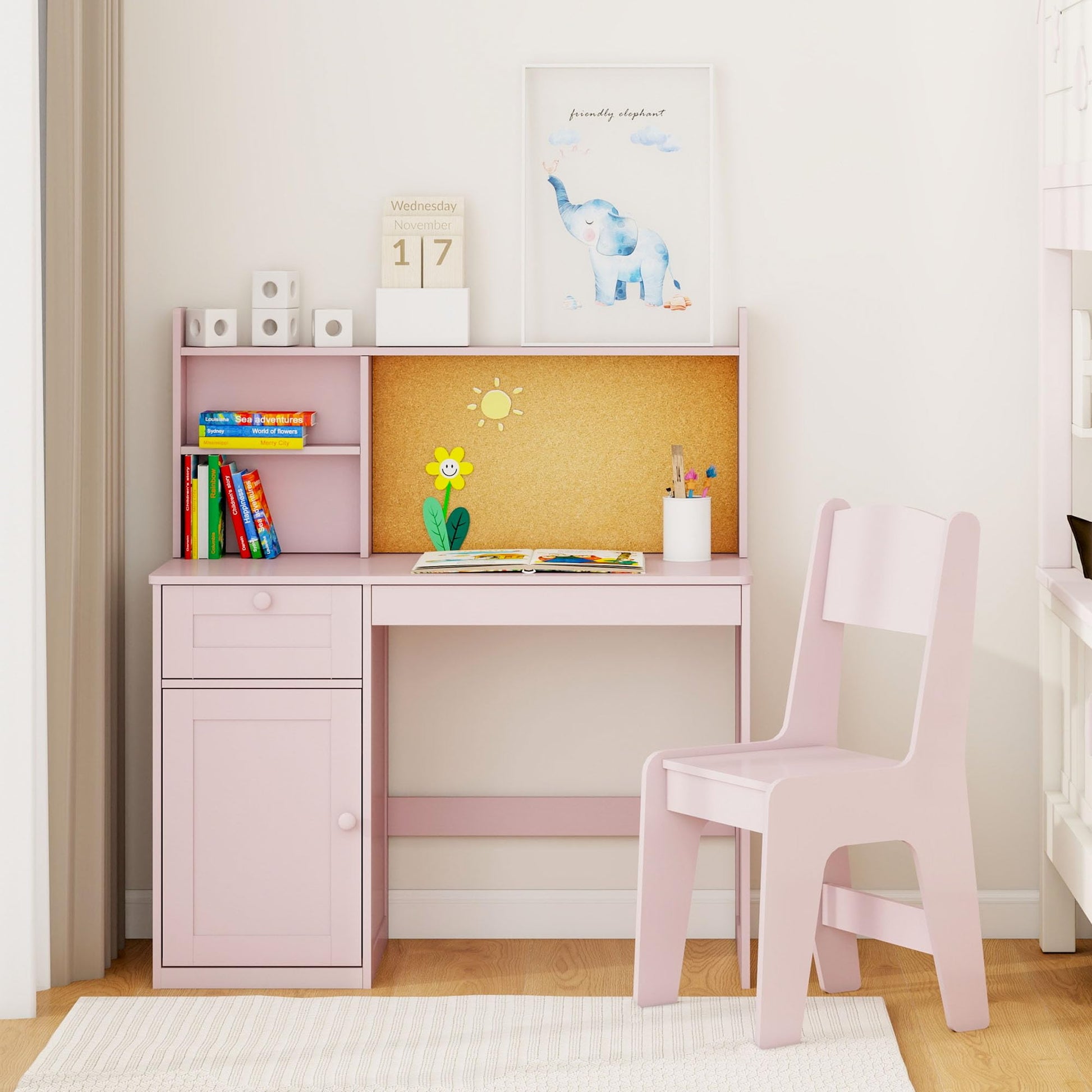 Kids Study Desk with Chair Set - Wooden Table for Ages 5-12 with Hutch and Storage
