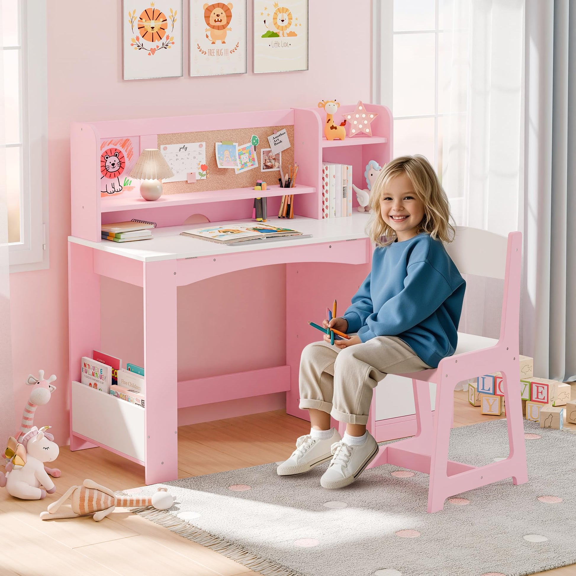 This study desk and chair set is ideal for children ages 5-12, encouraging the development of good study habits while providing an organized, clutter-free workspace. The modern design makes it a perfect gift for birthdays, back-to-school, or special occasions.