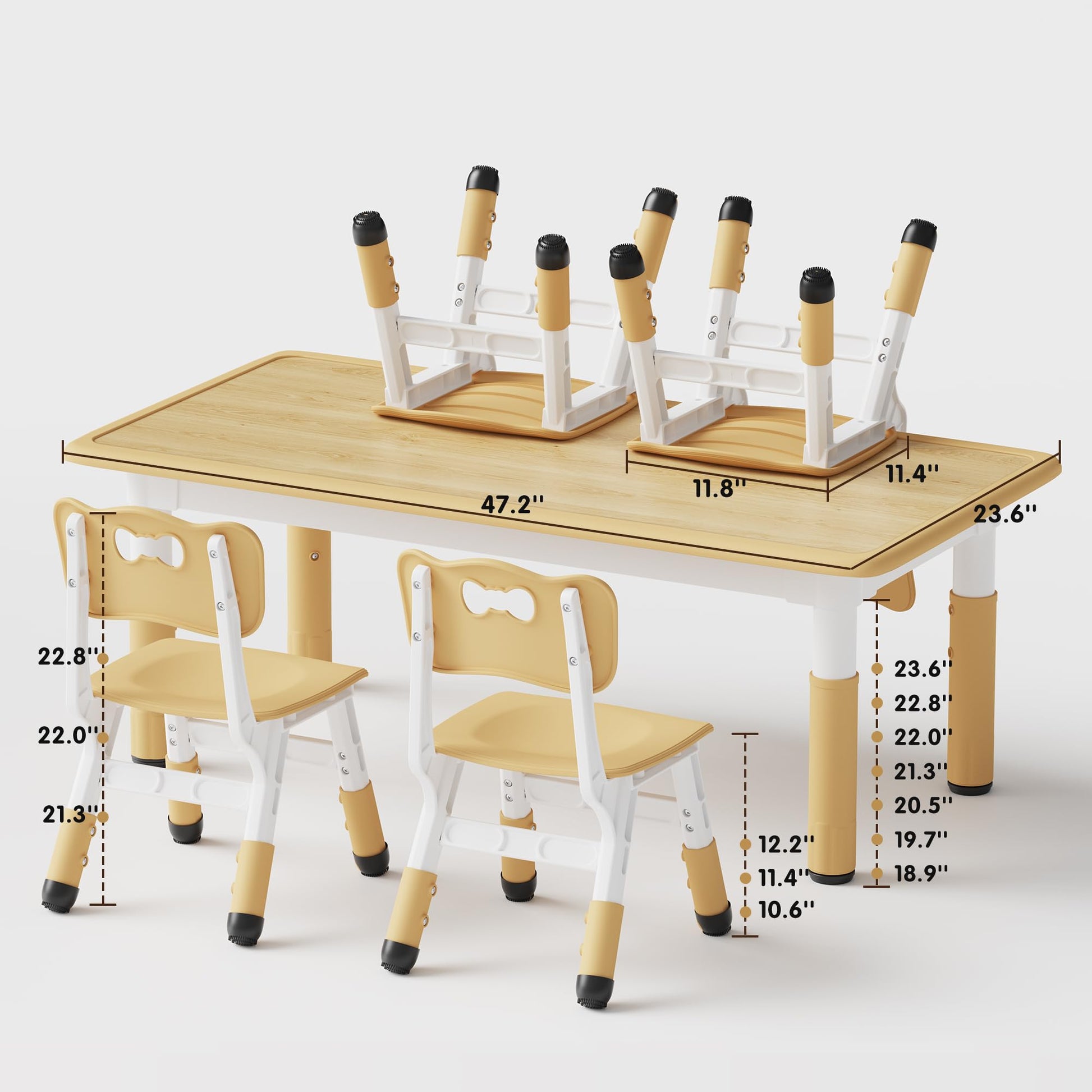 - Height Adjustable: Table offers 7 height levels, chairs offer 3 height levels. Grows with your child from ages 2-8.