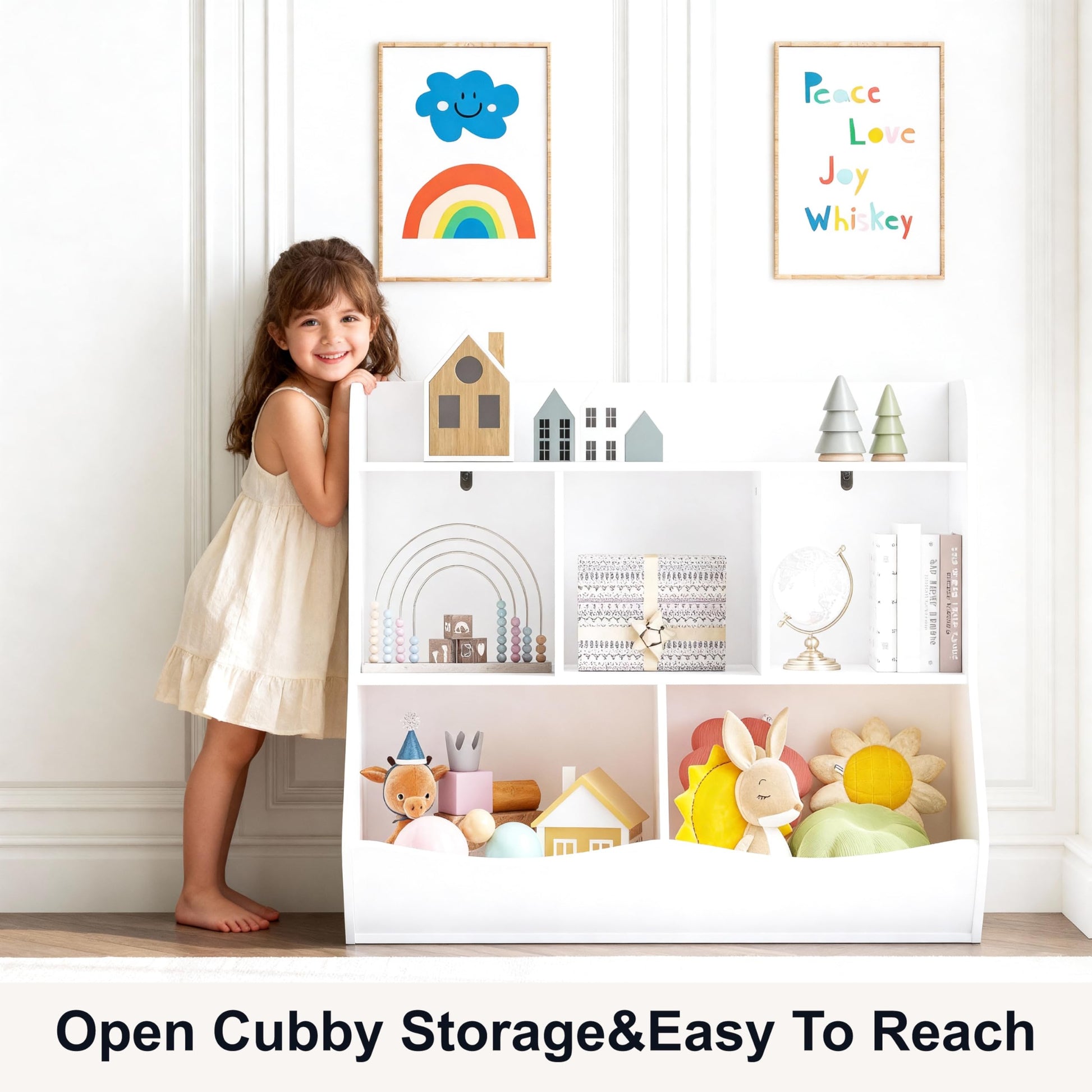 - Two large bins for storing toys, books, and heavy items