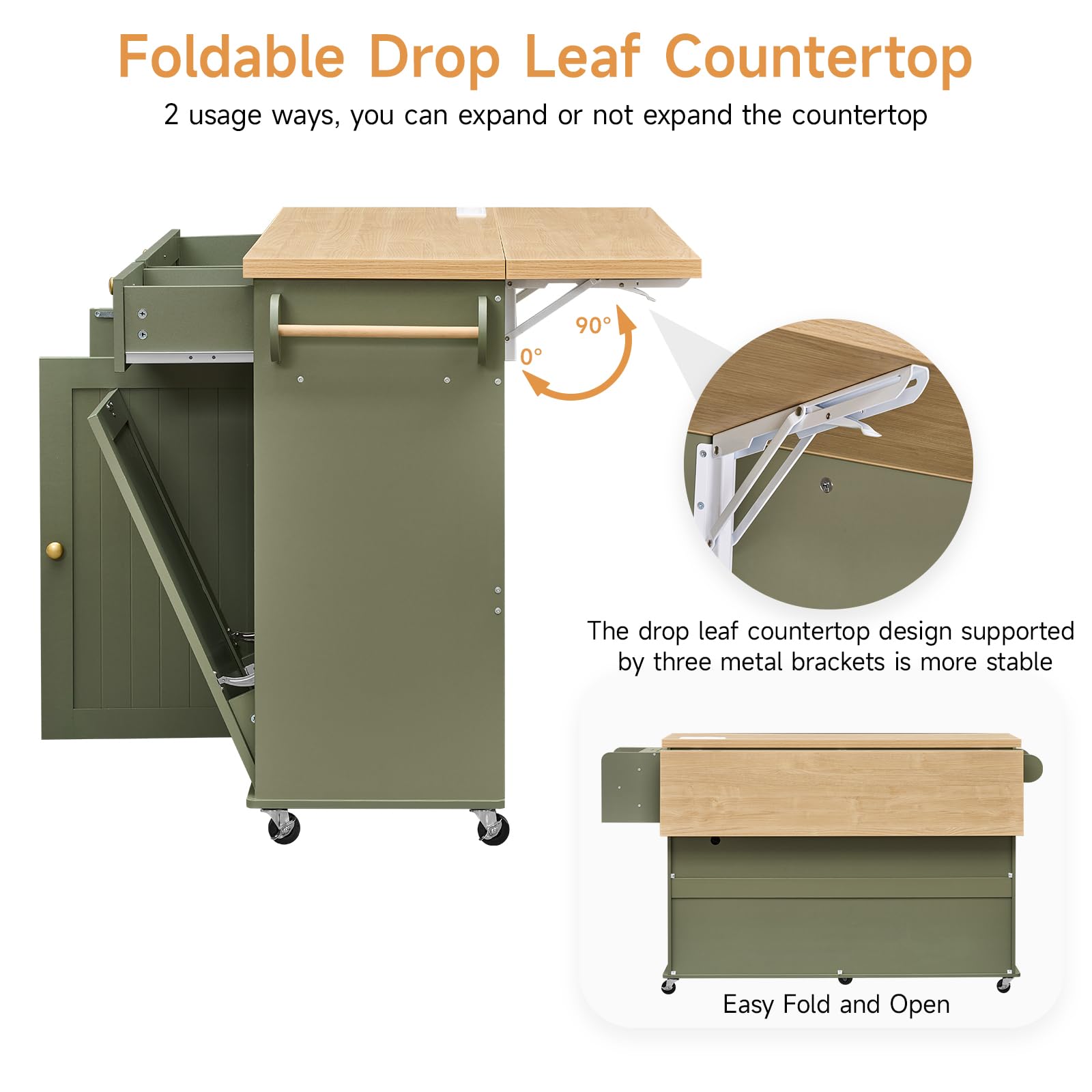 This versatile kitchen island combines functionality with modern design, featuring a spacious countertop, integrated power outlet, and convenient drop-leaf extension for additional workspace.