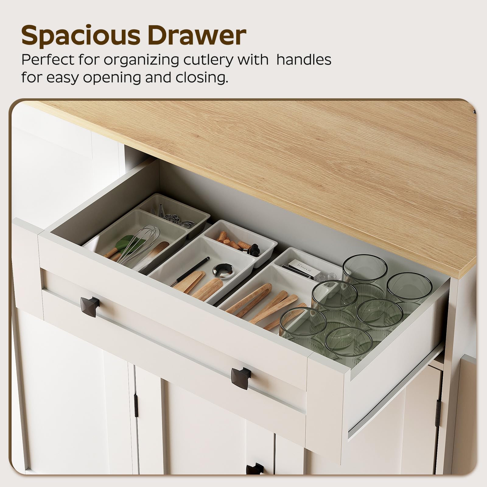 Perfect for kitchens that need flexible workspace and smart storage solutions. The mobile design allows you to position the island exactly where you need it, while the integrated features keep your kitchen organized and functional.