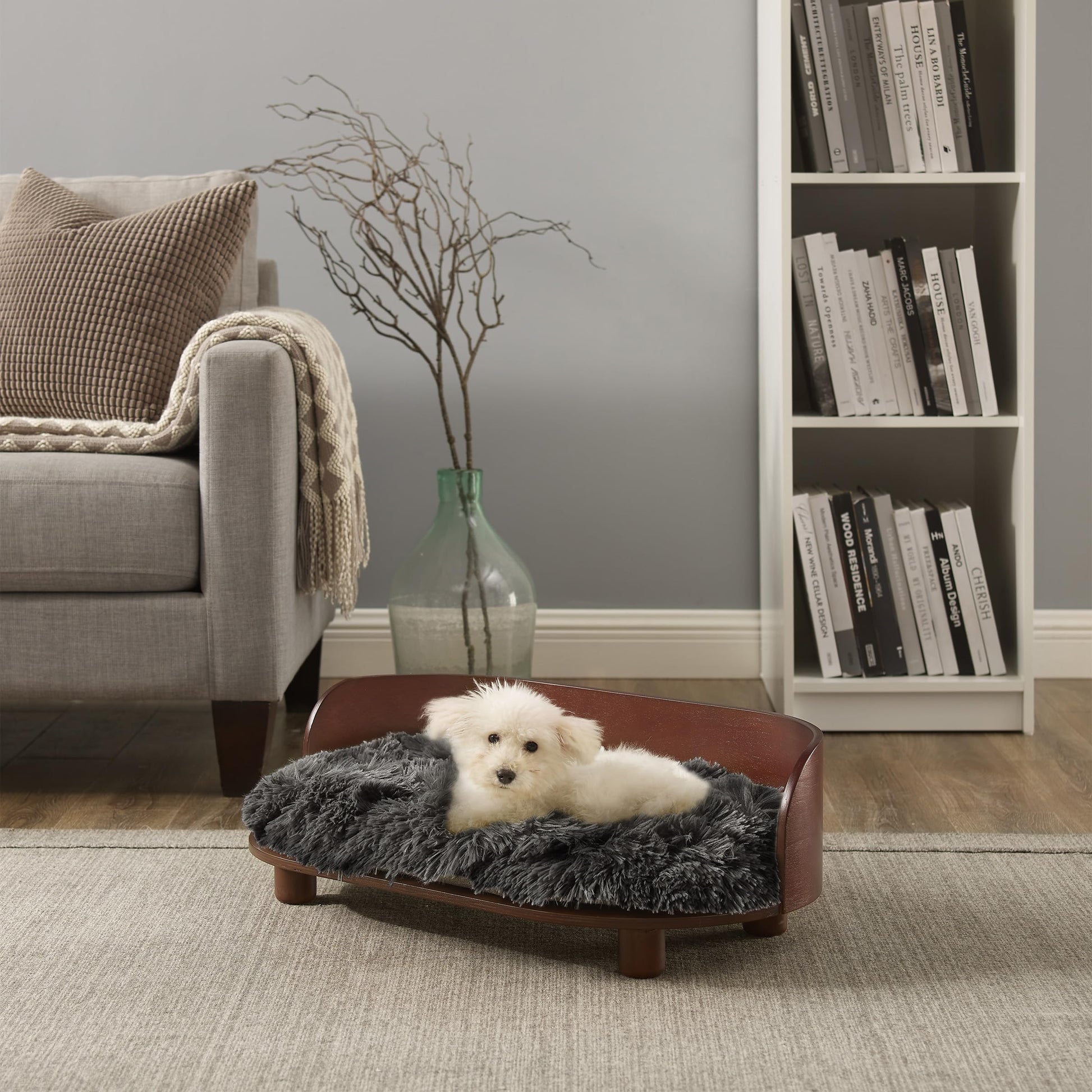 Kuai Medium Pet Bed - Dark Brown Bent Wood with Soft Fur Cushion
