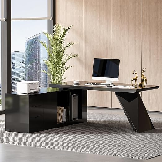 This premium L-shaped executive desk combines modern design with exceptional functionality, perfect for home offices and business environments. Featuring integrated storage solutions and a spacious work surface, this desk maximizes productivity while maintaining a sleek, professional appearance.