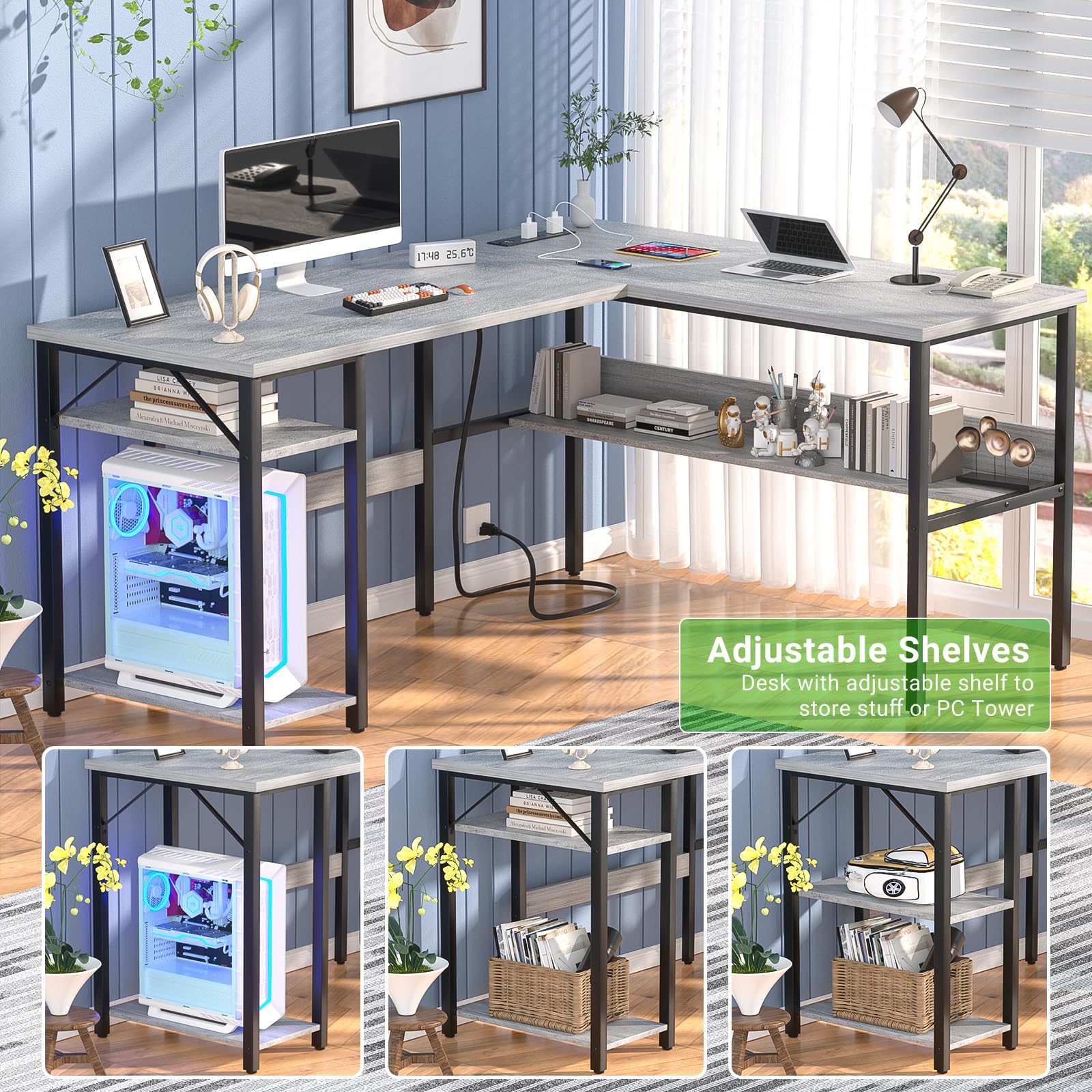 Transform your workspace with this versatile L-shaped computer desk featuring integrated power outlets and USB charging ports. Designed for modern home offices, this reversible corner desk combines functionality with contemporary style.