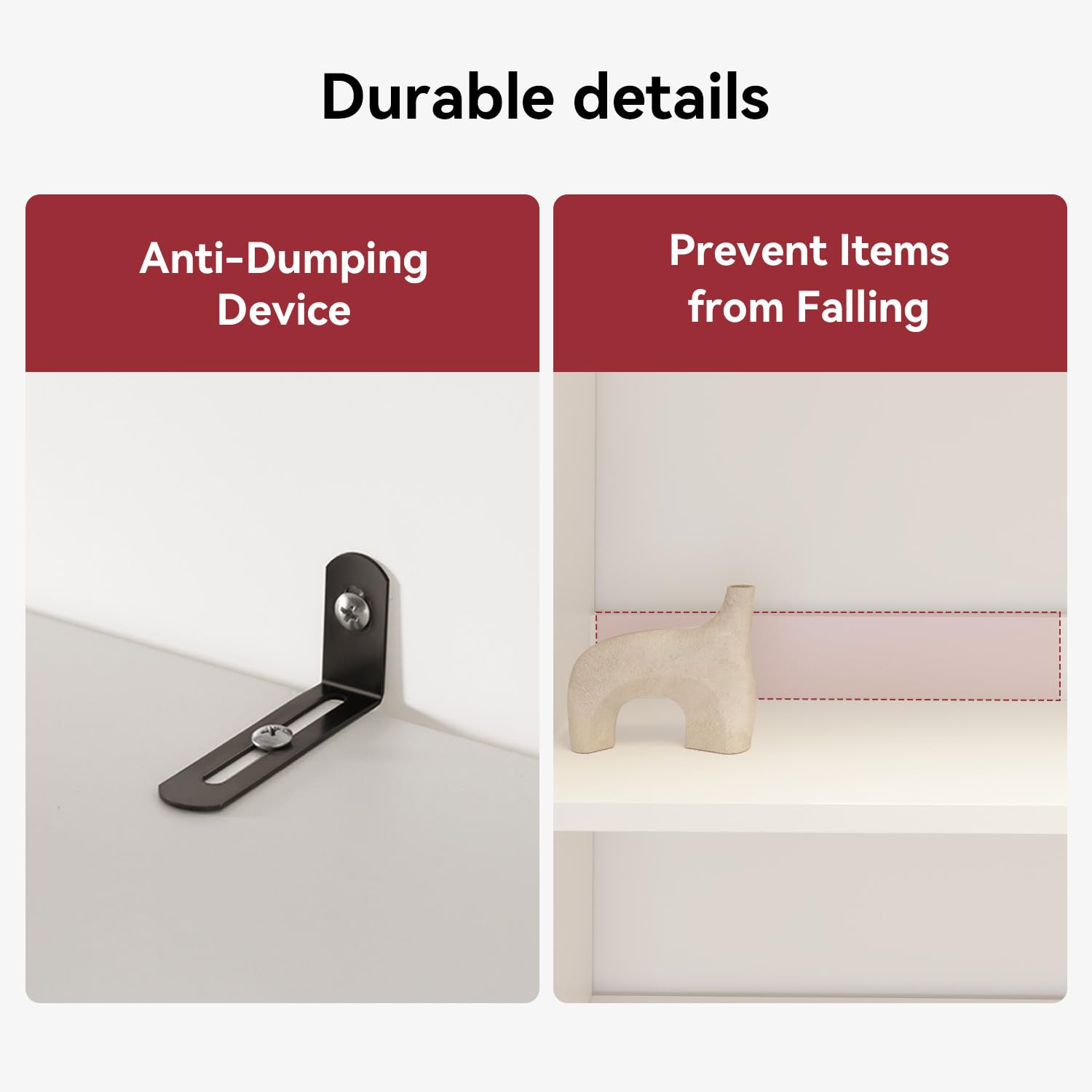 - Anti-Tip Safety Kit: Includes reinforced screws and anti-tip hardware for enhanced stability, ideal for homes with children or pets