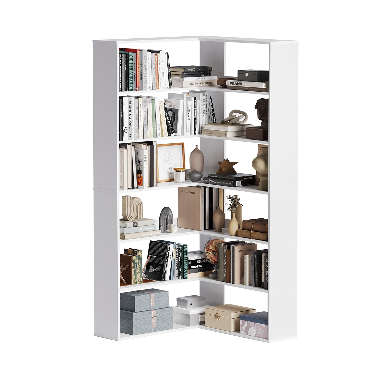 L-Shaped Corner Bookshelf 6-Tier Storage Display