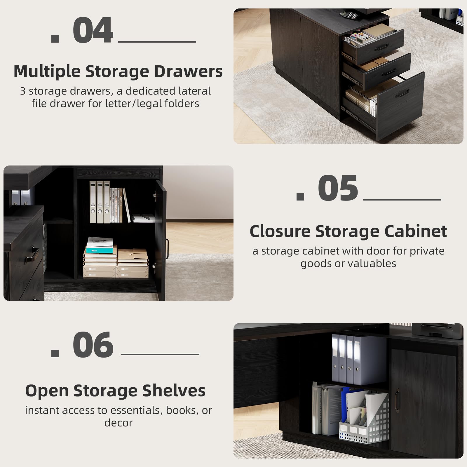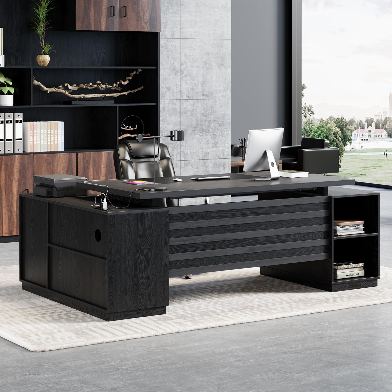 Perfect for home offices, executive suites, and professional workspaces requiring ample surface area and integrated storage solutions.