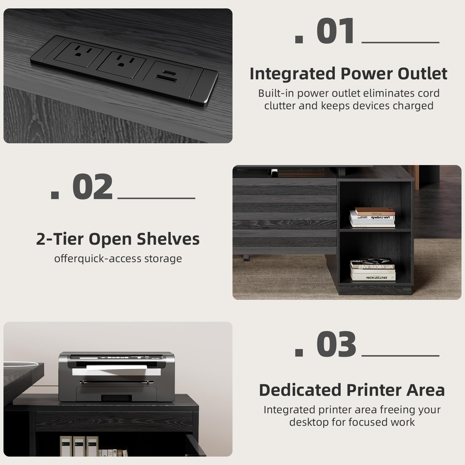 Transform your workspace with this spacious executive desk designed for productivity and organization. Featuring integrated power outlets, multiple storage solutions, and a modern two-tone finish, this desk combines functionality with contemporary style.