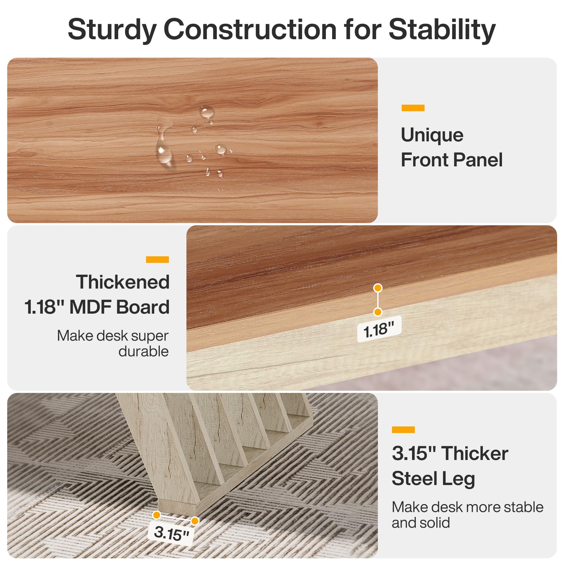 This spacious L-shaped executive desk combines modern design with exceptional functionality, perfect for home offices, business workstations, or gaming setups. The two-tone walnut and oak finish with unique angled legs creates a sophisticated aesthetic that complements any interior style.
