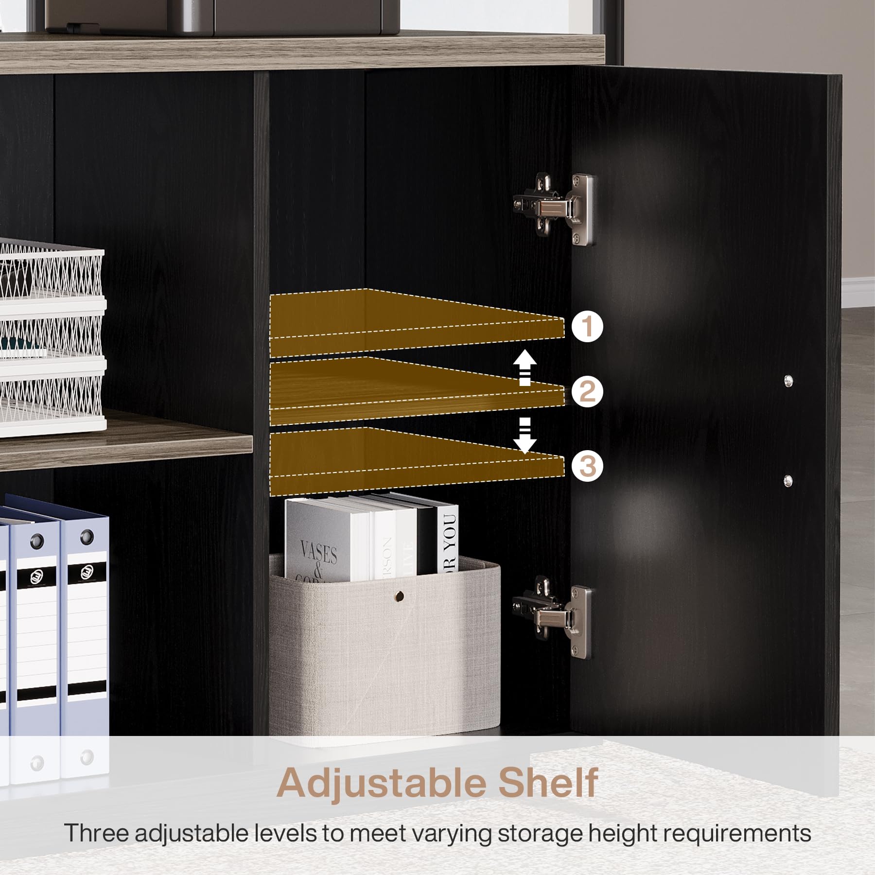 - Exquisite Finish: Features an elegant wood grain finish with smooth lines in grey and black, complementing various office décor styles