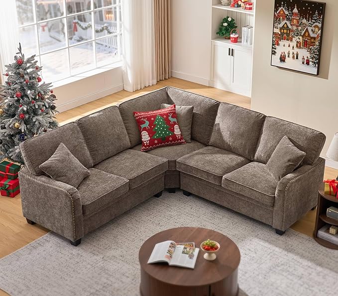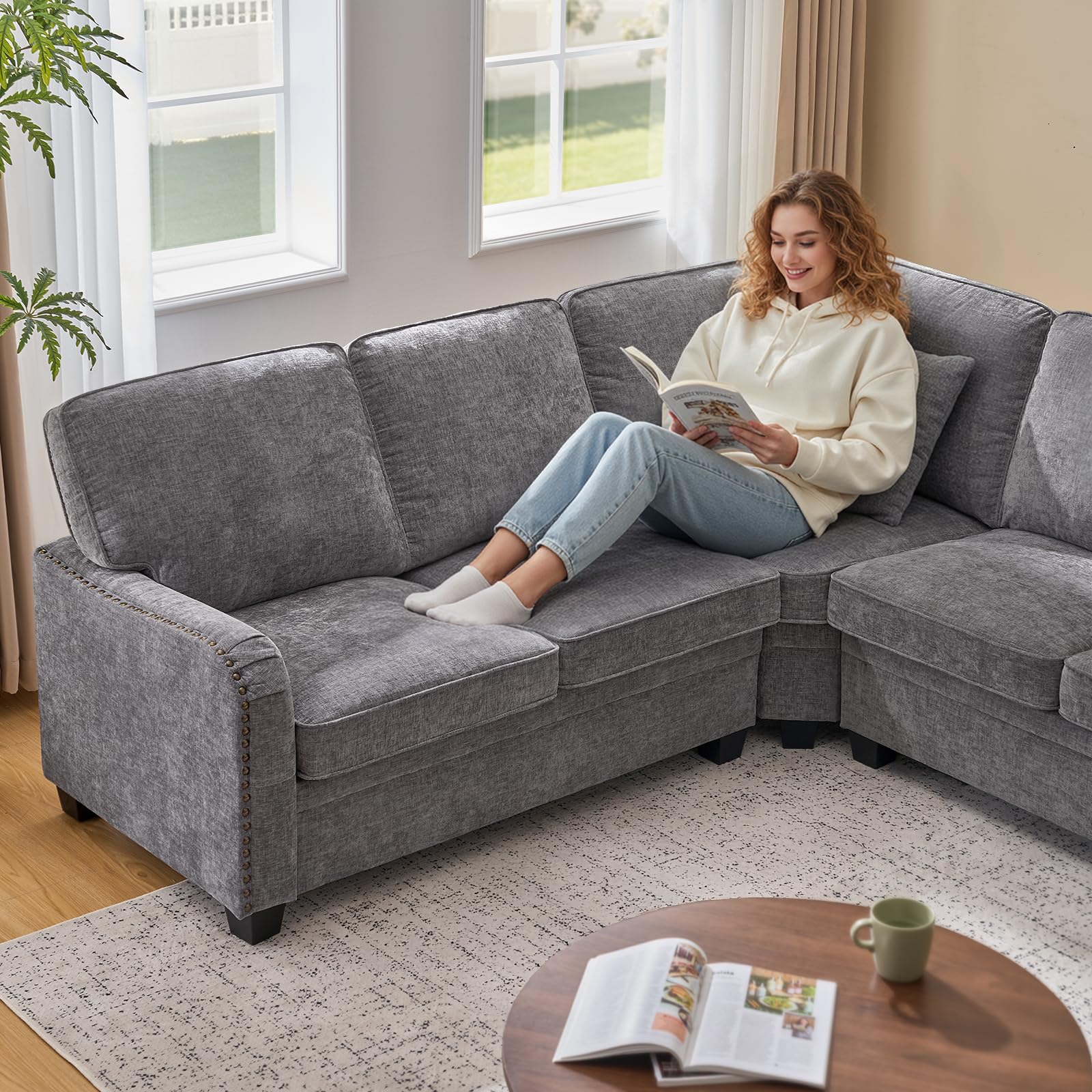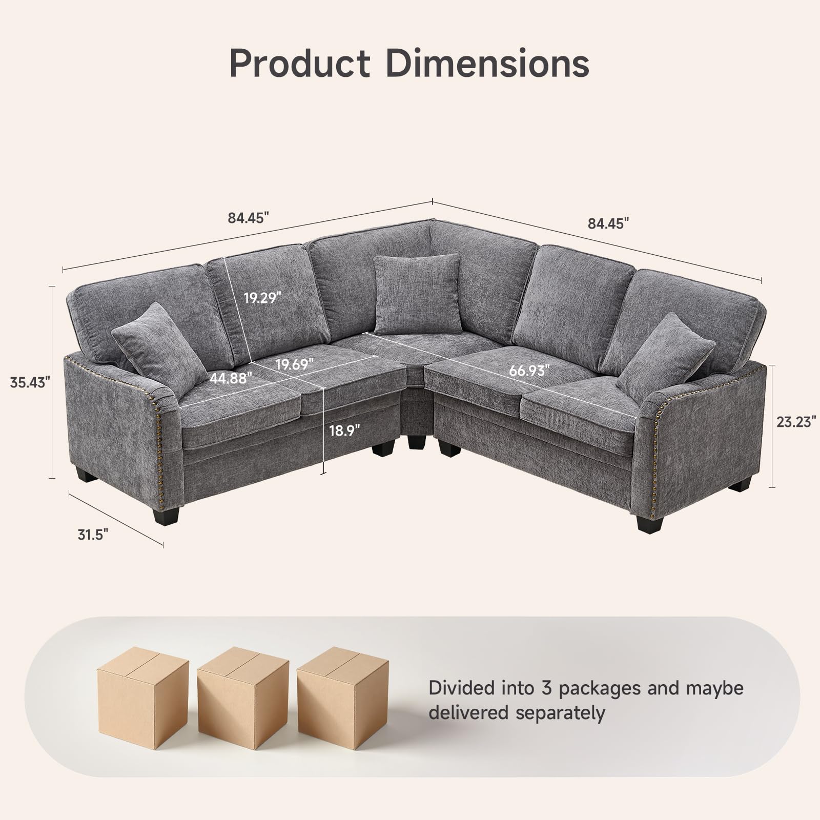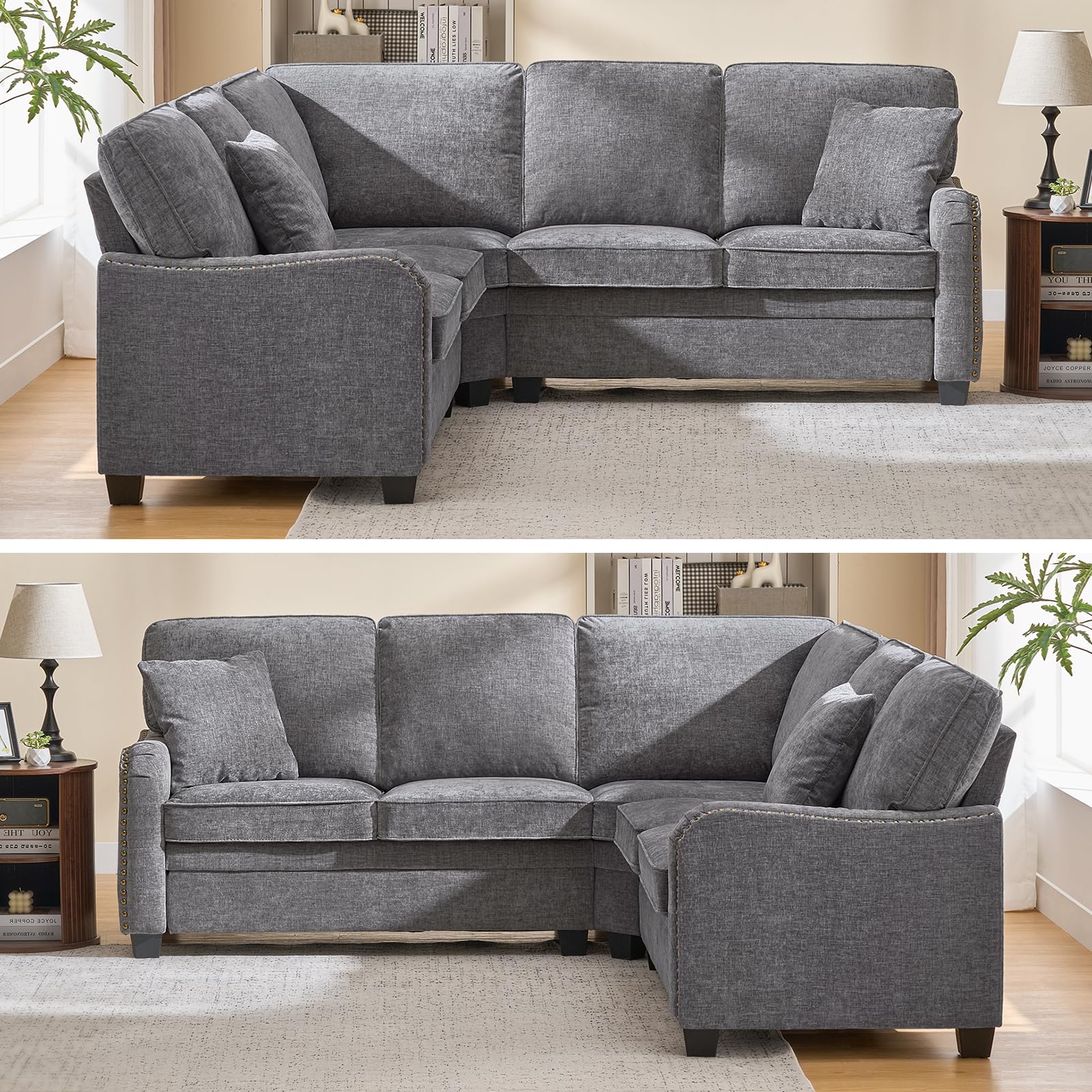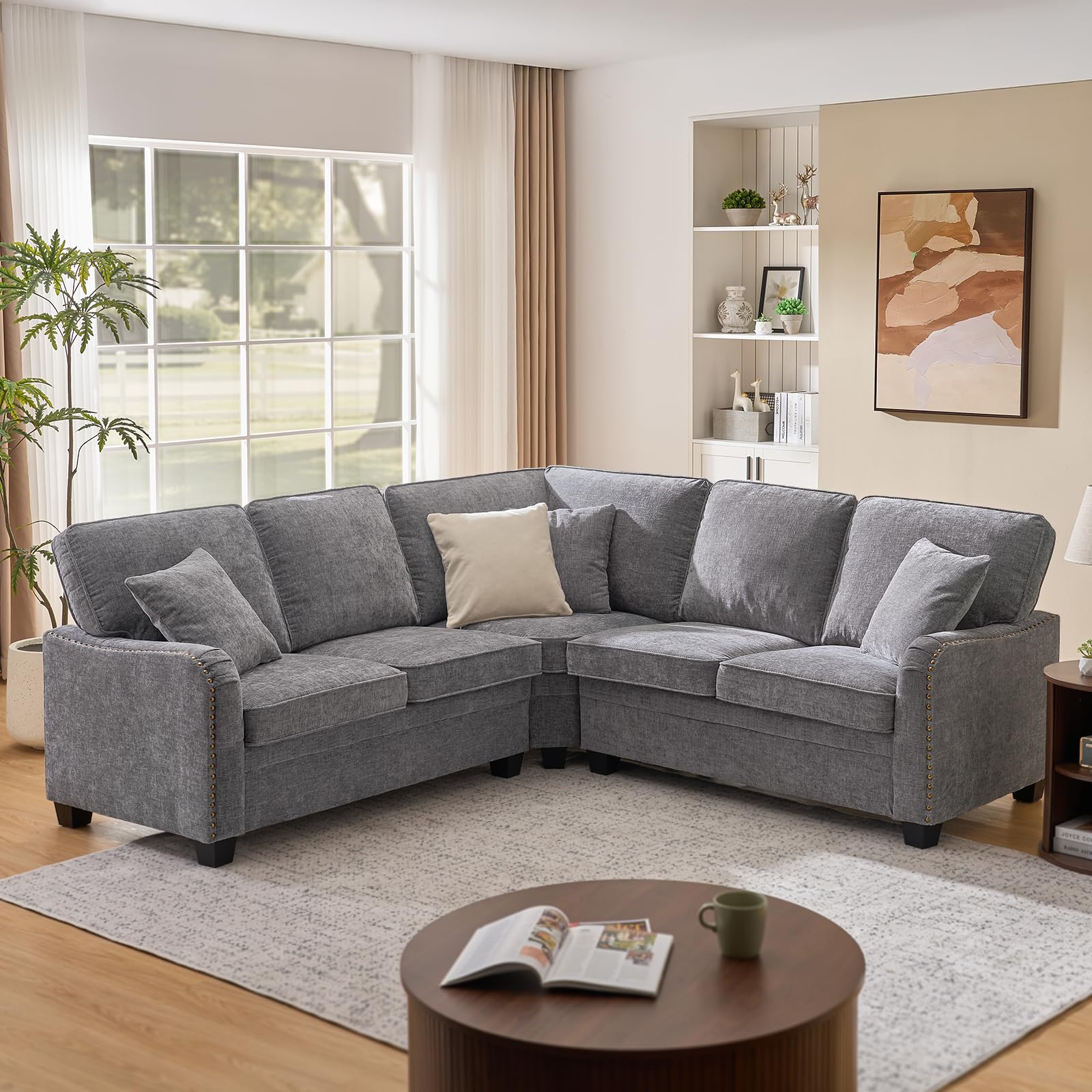 Transform your living space with this modern L-shaped sectional sofa featuring elegant nailhead trim detailing. Upholstered in soft chenille fabric, this convertible corner couch offers exceptional comfort and versatility for apartments and living rooms.