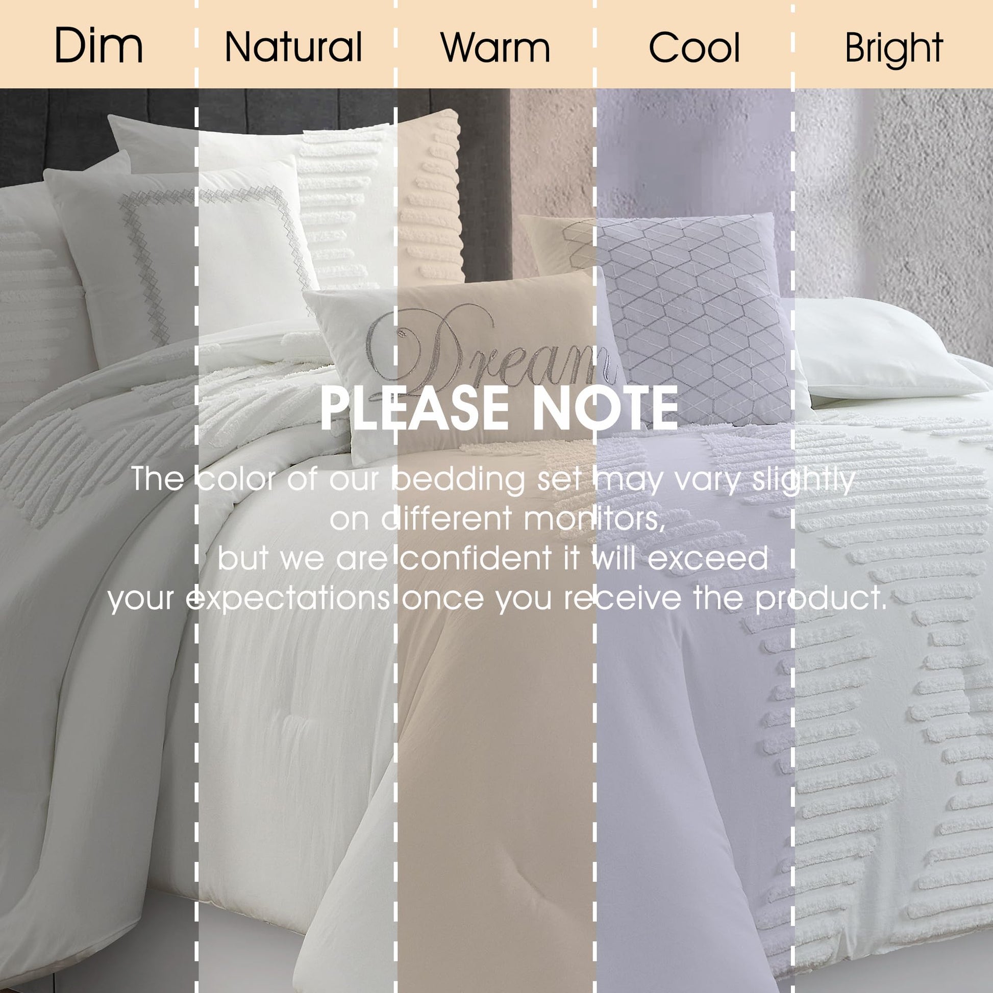 LANCO MODERN LIFESTYLE White Comforter Set 7 Piece, King, Tufted Embroidery Geometric, Ultimate Comfort Bedding Set for All Seasons, Bed in a Bag Included Comforter, Bedskirt, Shams and Decor Pillows