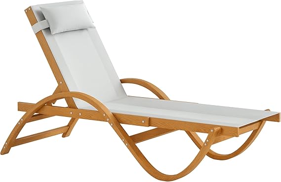 This outdoor lounge chair features an elegant S-shaped frame with a 4-level adjustable backrest and headrest, perfect for reading, sunbathing, or relaxing. The 600 gsm breathable mesh seat ensures cool comfort on warm days, while the solid larch wood construction treated with wood wax oil provides durability and weather resistance.