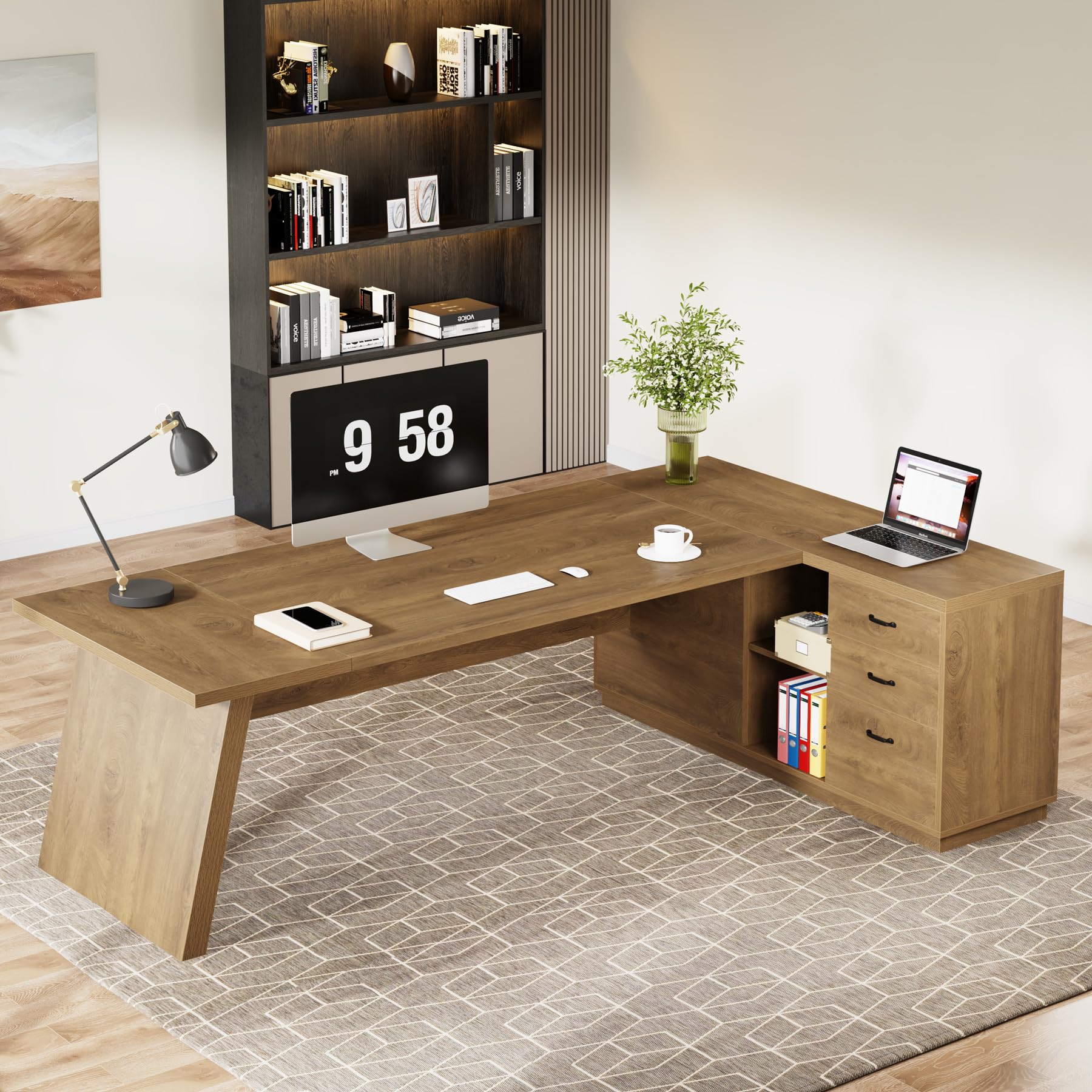 This large L-shaped executive desk combines expansive workspace with intelligent storage solutions, perfect for modern home offices and professional workspaces. The generous surface area accommodates multiple monitors, laptops, documents, and personal items while maintaining an organized, clutter-free environment.