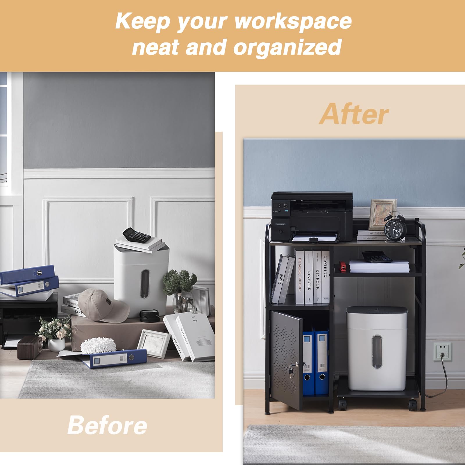 - Sturdy construction supports office equipment safely