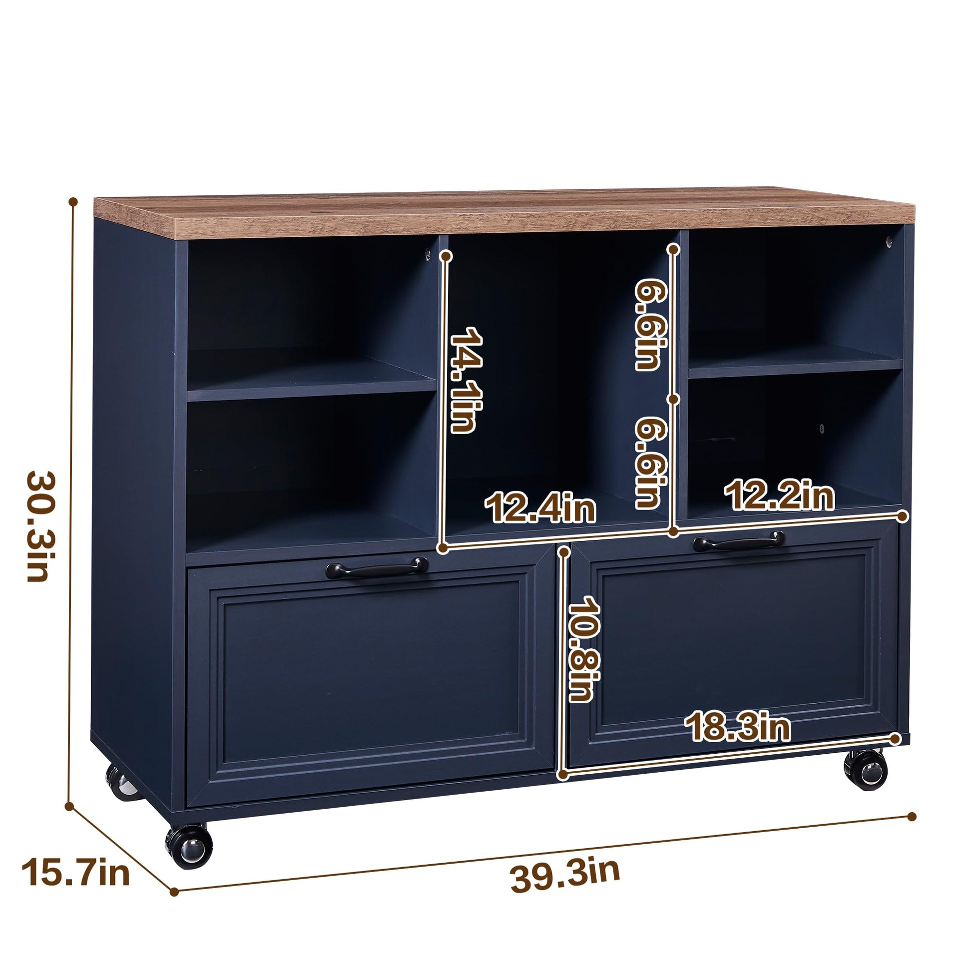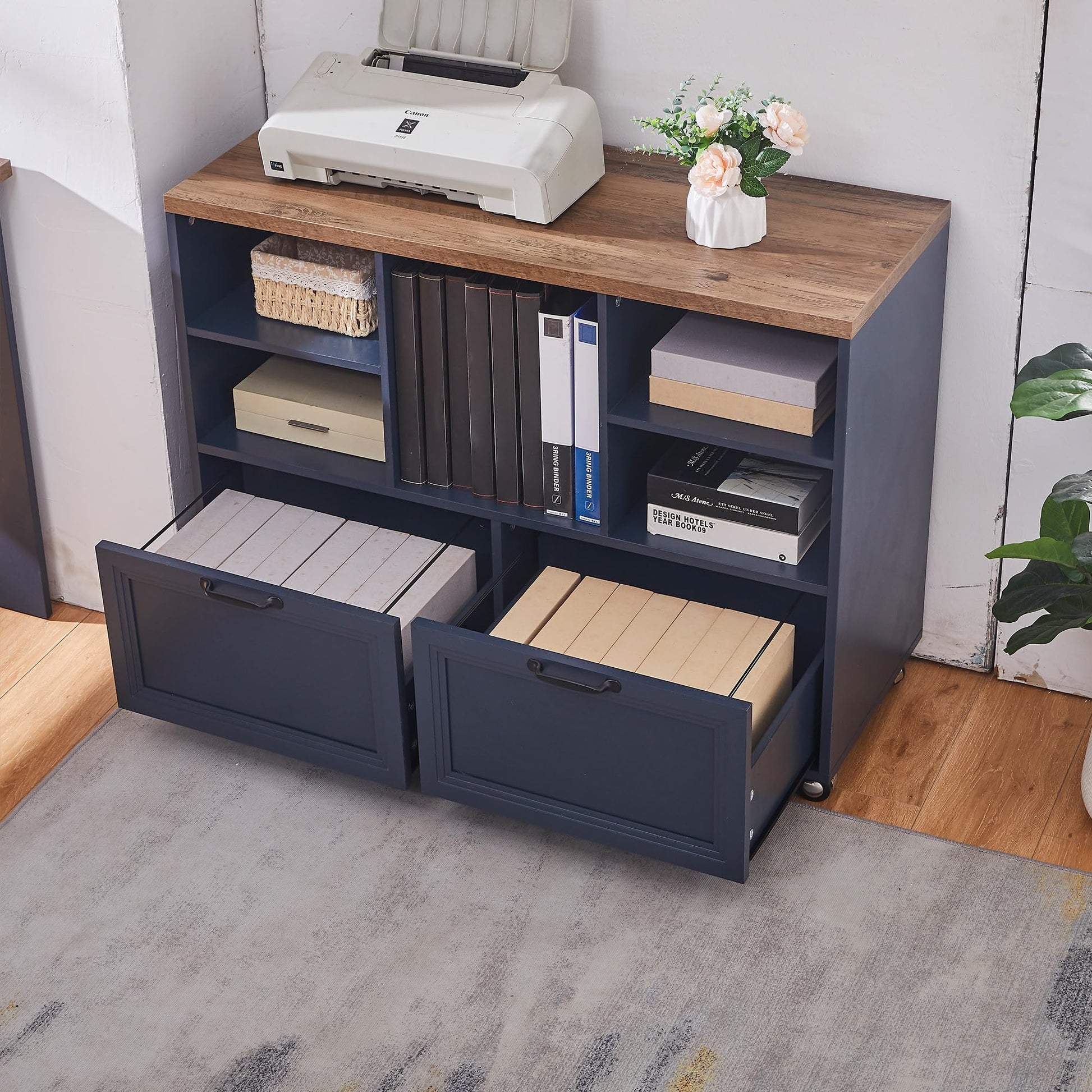 LayBurst 39.3" Farmhouse Wood File Cabinet with Wheels,Small Home Office Storage,Rolling File Cabinet with 2 Drawers for Legal/Letter/ A4 Size (Blue)