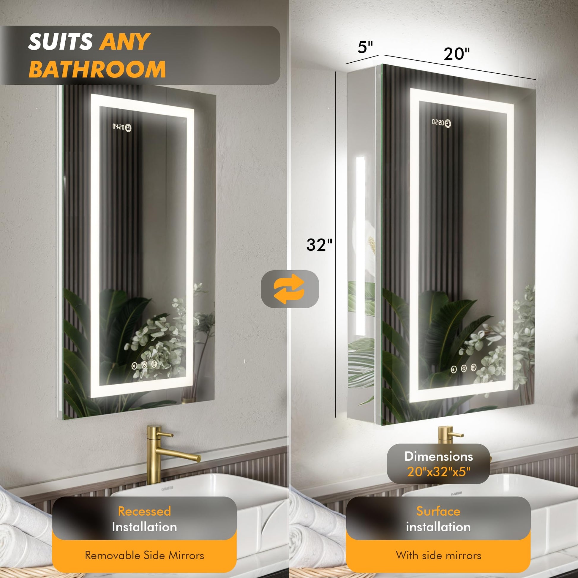 LED Lighted Medicine Cabinet with Clock, Temperature Display & USB Outlets