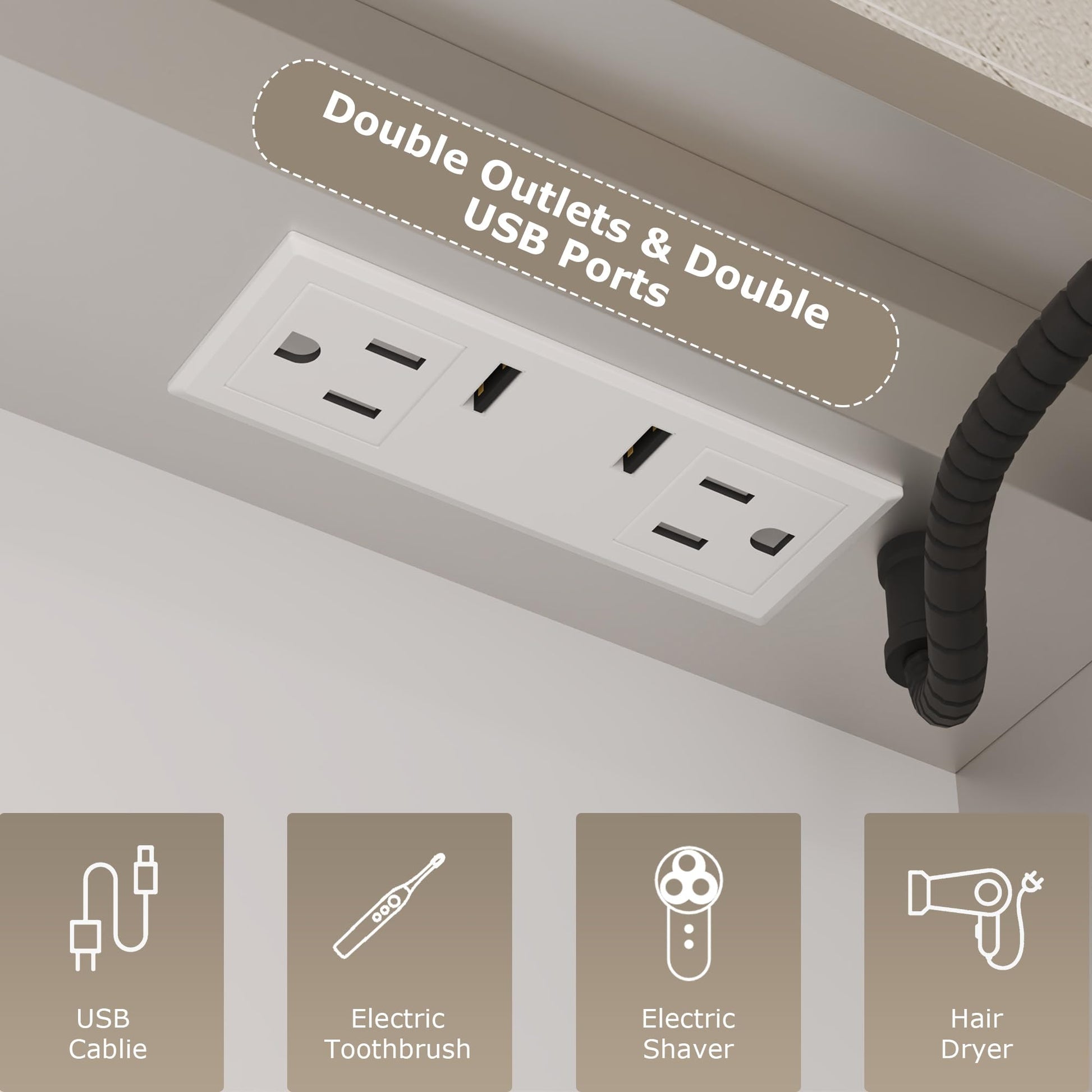 - Ample storage space for bathroom essentials