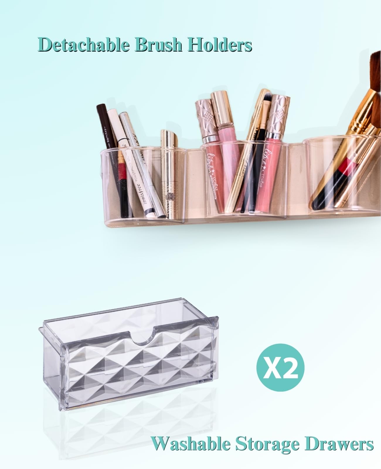 - Ample Storage Capacity: Features 5-tier earring hangers, 4-level shelves, 3 brush holders, 2 drawers, and 7 compartments to organize and showcase your jewelry collection in one convenient location
