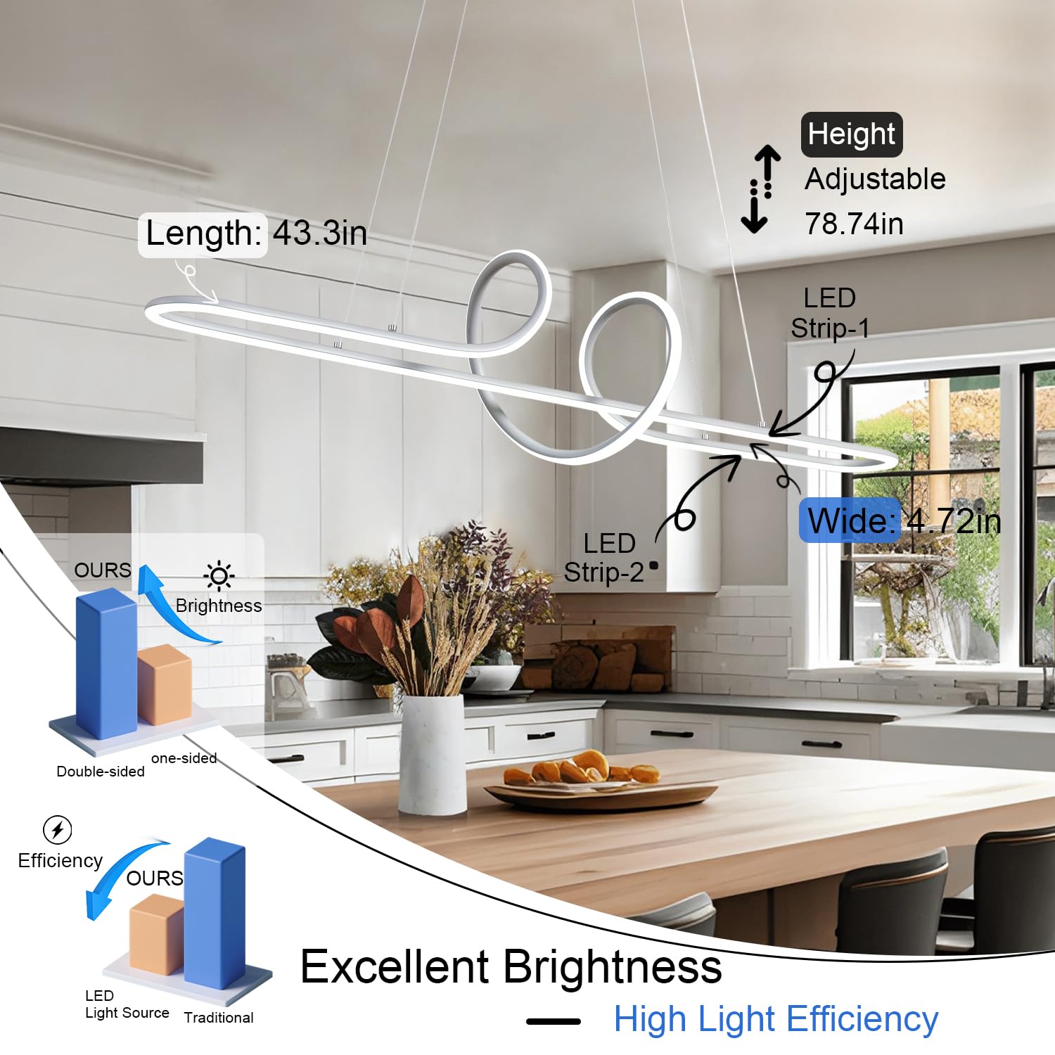 - Modern chandelier style perfect for kitchen islands and dining rooms