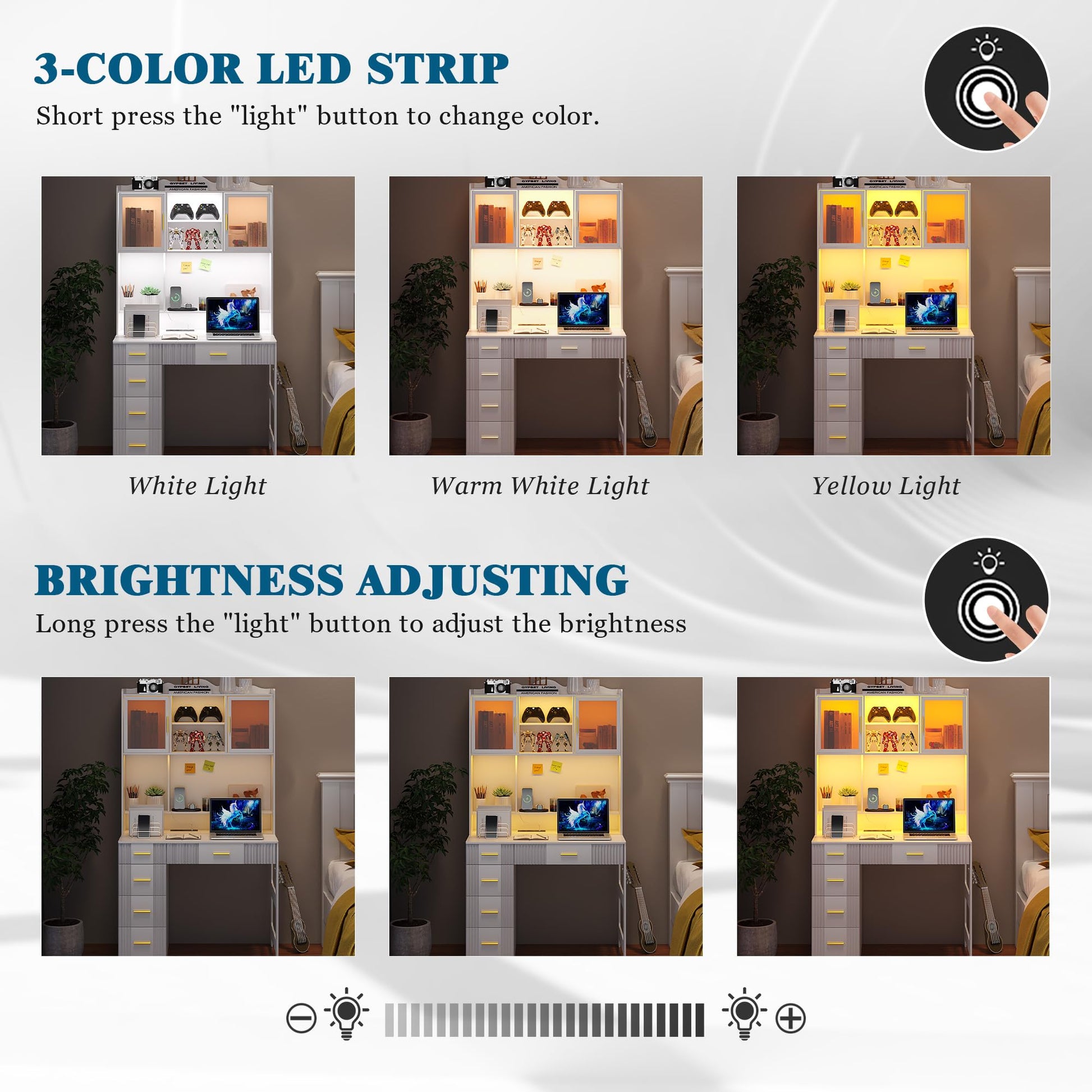 Transform your workspace with this modern study desk featuring integrated LED lighting, convenient storage solutions, and built-in charging capabilities. Perfect for home offices, bedrooms, or compact workspaces, this desk combines functionality with contemporary design.