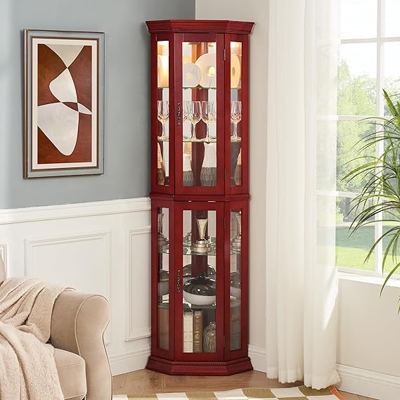 Elevate your home decor with this elegant lighted glass curio cabinet. Perfect for showcasing collectibles, antiques, china, trophies, or decorative items with timeless sophistication.