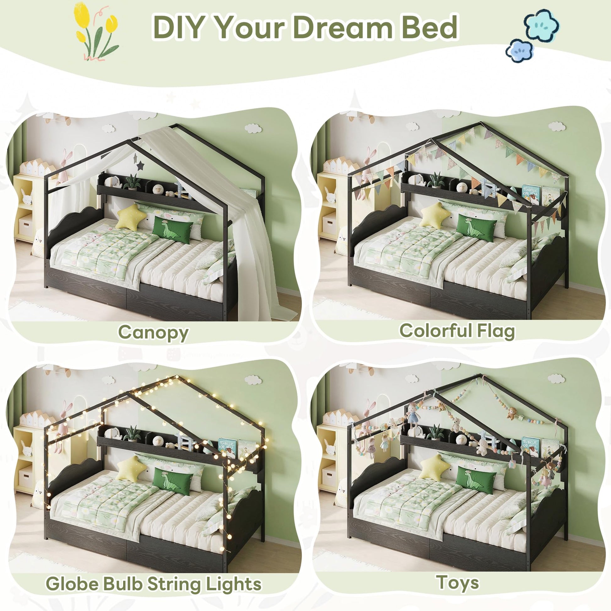- House Bed with Dreamy DIY Fun: The charming house-shaped bed frame adds more funny to bedroom. Easy to personalize, you can decorate the "house" with canopy, colorful flag, globe bulb string lights or toys, making it a uniquely special and dreamy space.