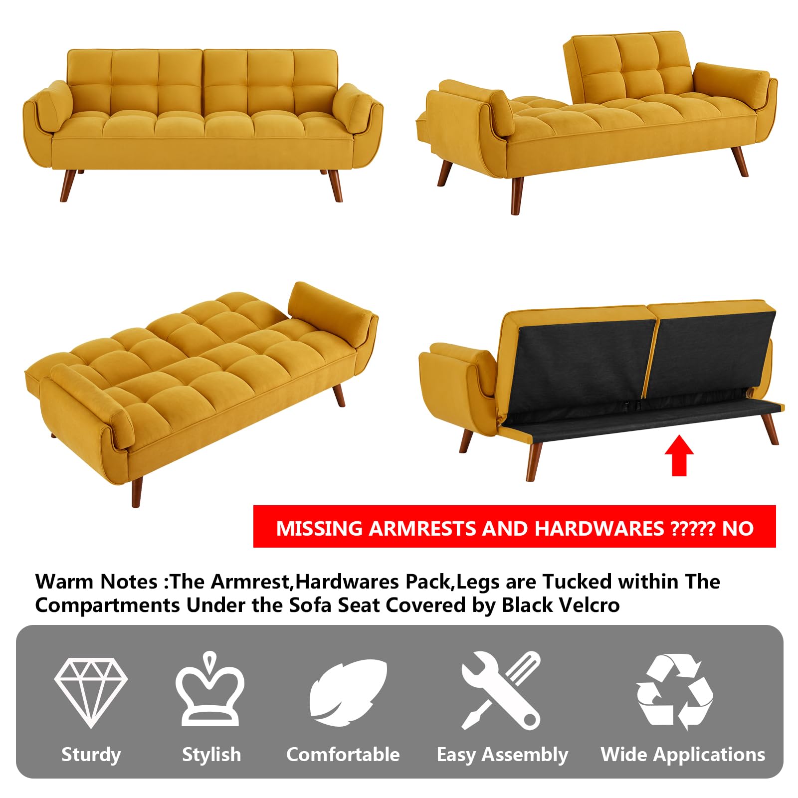 This modern futon couch bed combines style, comfort, and functionality. The tufted plaid pattern adds visual interest while the neutral linen yellow color complements any decor. Perfect for small spaces, this convertible sleeper provides comfortable seating by day and a cozy sleeping surface by night.