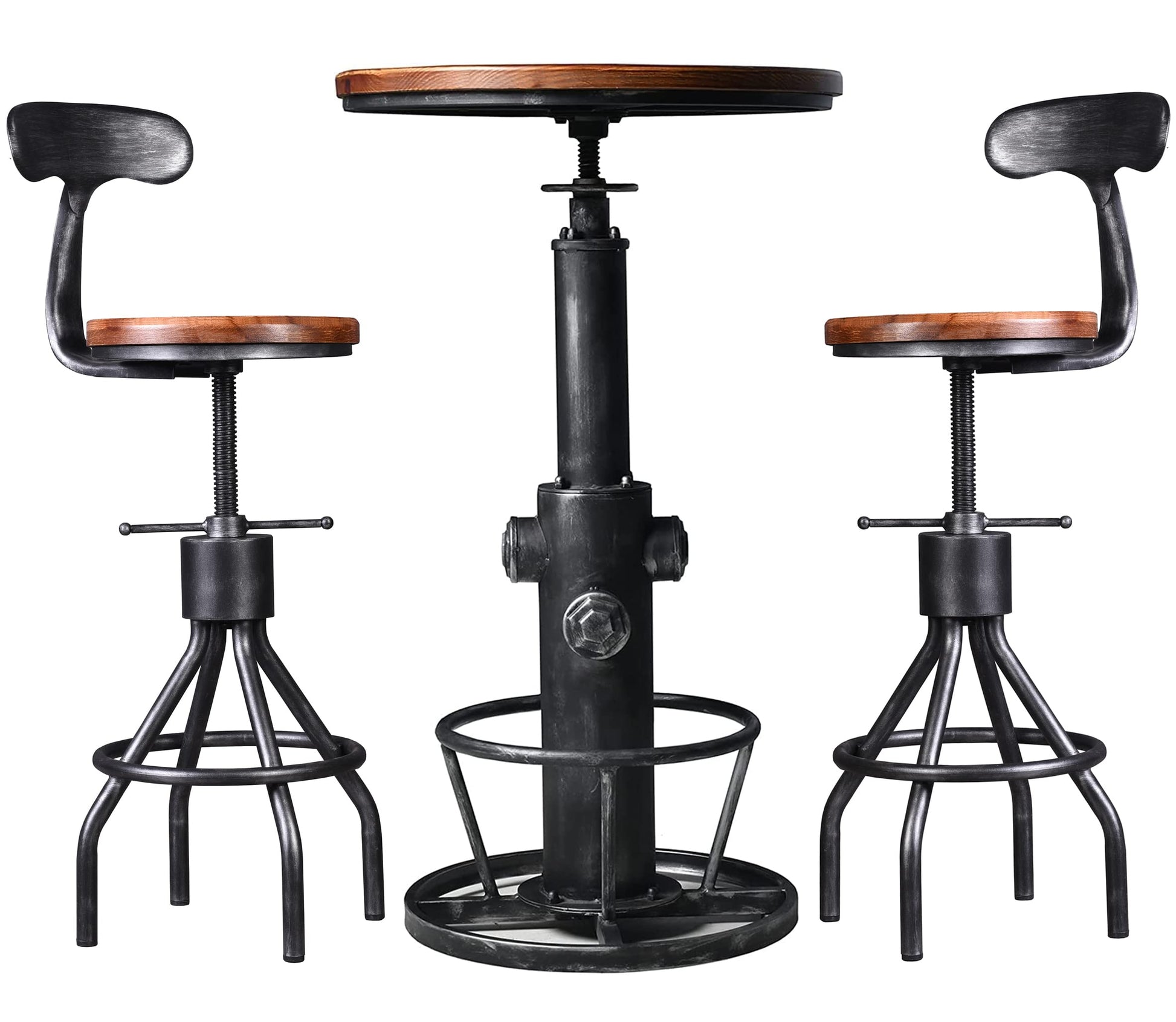 LOKKHAN 3-Piece Bar Table (38.6"-48.4") & 2 Backrest Stools (24"-30") Set for Pub Kitchen Dining Living Party Bistro Breakfast, Swivel Top, Height Adjustable, Most Weld, Space-Saving