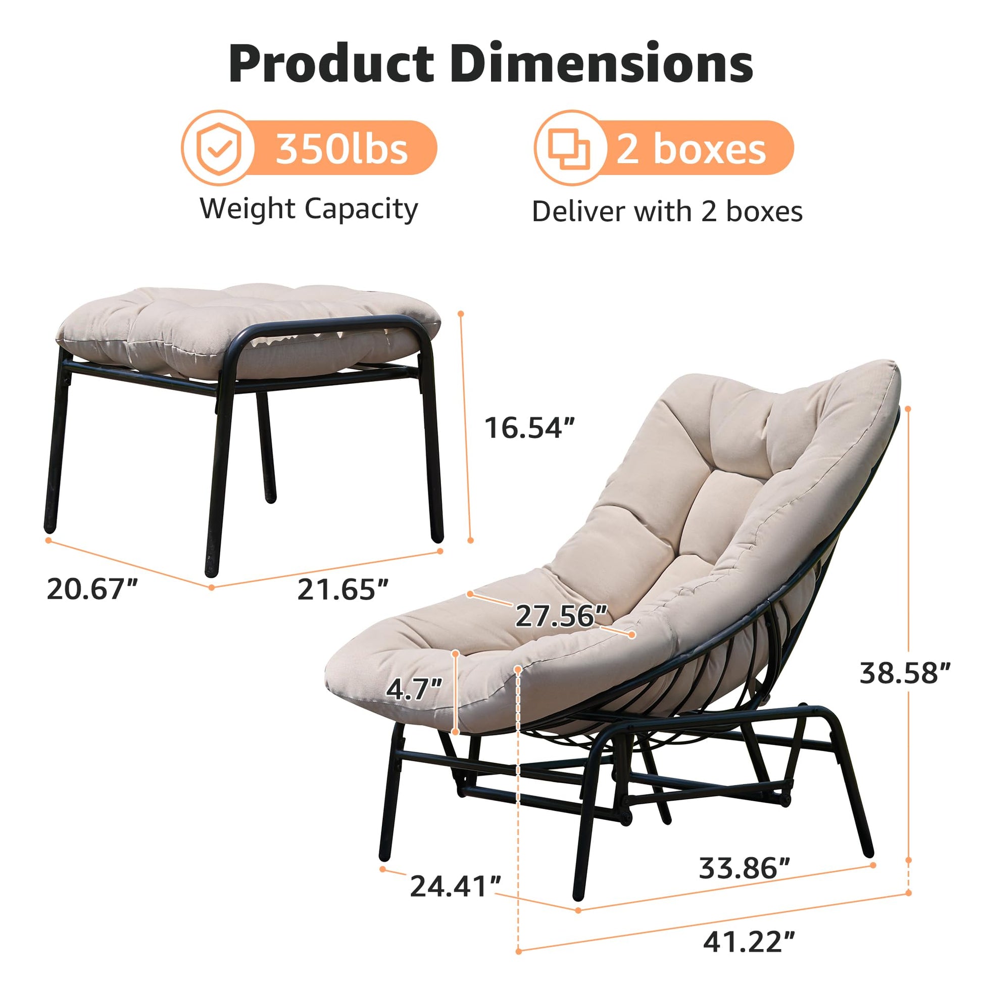 Lounge Chair with Ottoman - Metal Frame Rocking Glider Set with Cushions