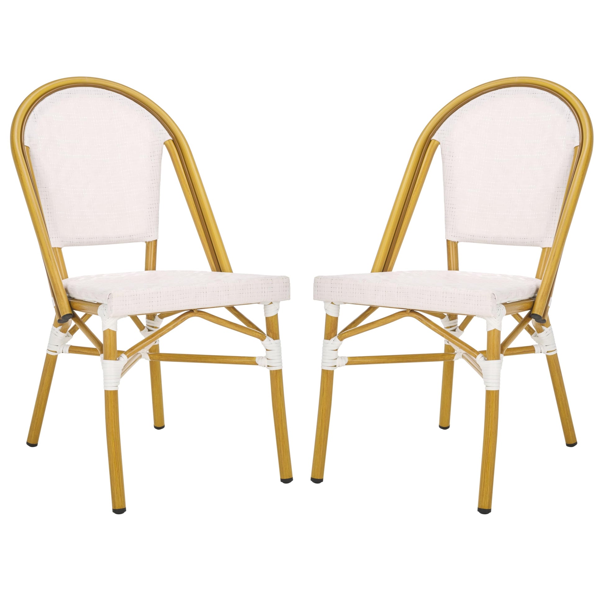 Enhance your outdoor dining experience with this elegant bistro chair set. The white seat paired with a bamboo-look frame delivers an aesthetically pleasing contrast that complements any outdoor setting. Crafted from robust aluminum and wrapped in all-weather faux rattan, these chairs are built for durability while maintaining a lightweight design for easy maneuvering.