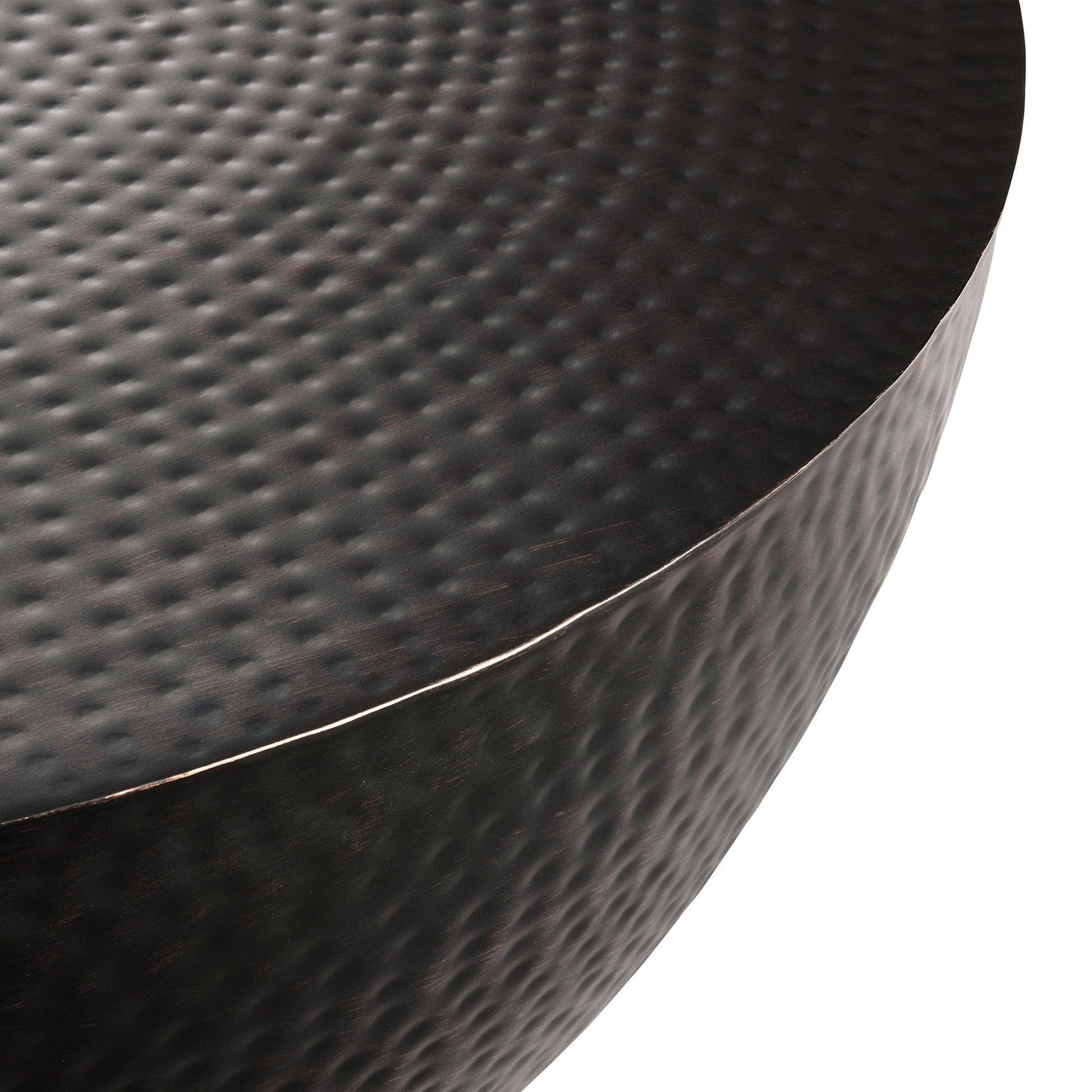 Mella Hammered Round Coffee Table - Black Metal Drum Style