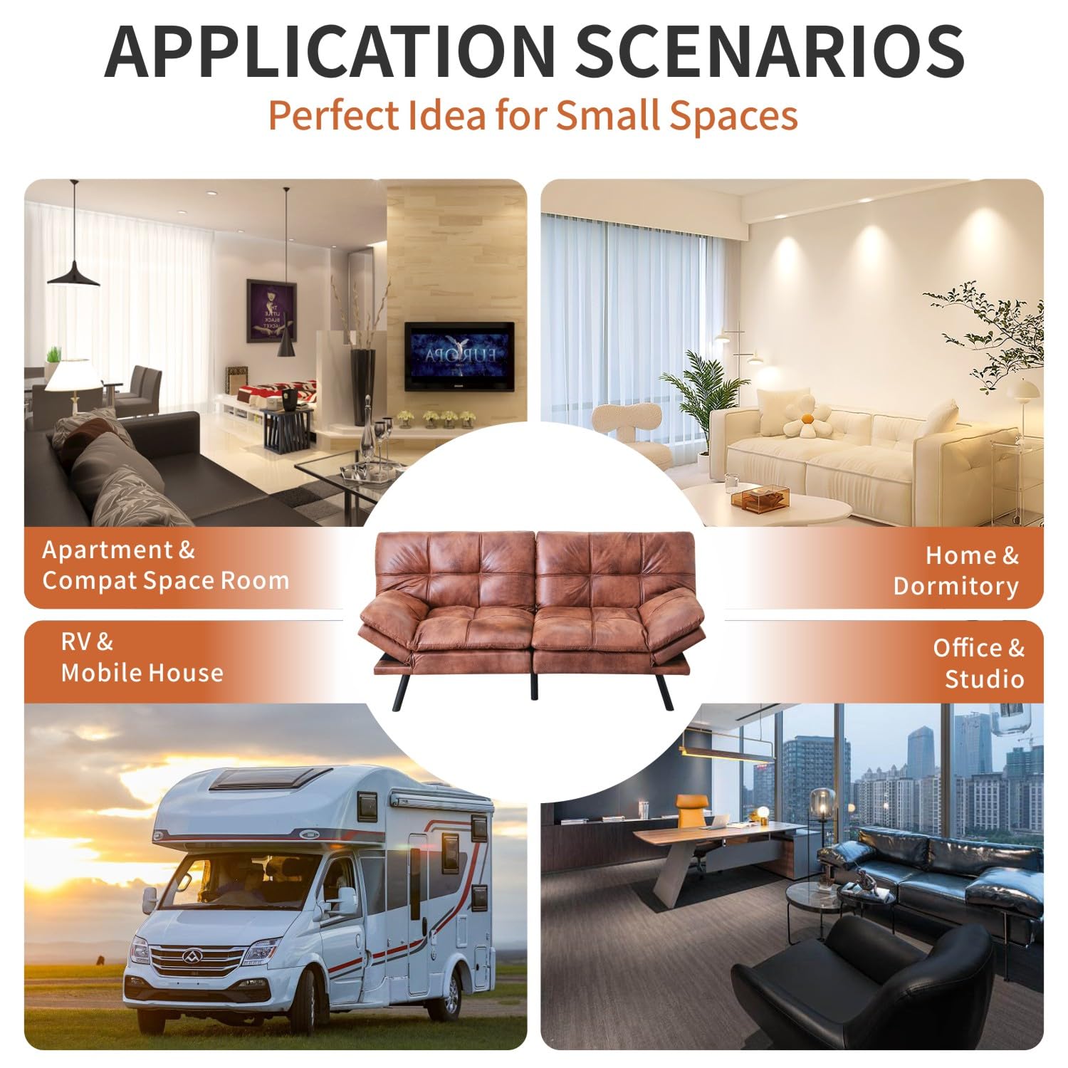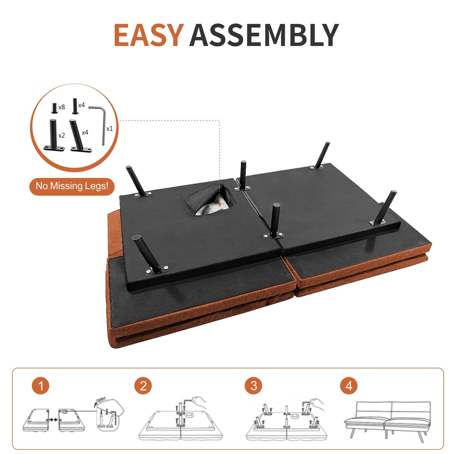Crafted with premium polyester fabric and filled with 2.5" memory foam plus support cotton, this futon delivers exceptional comfort and support. The high-quality wood frame and metal legs provide superior stability, supporting up to 600 pounds—perfect for 2-3 adults simultaneously.