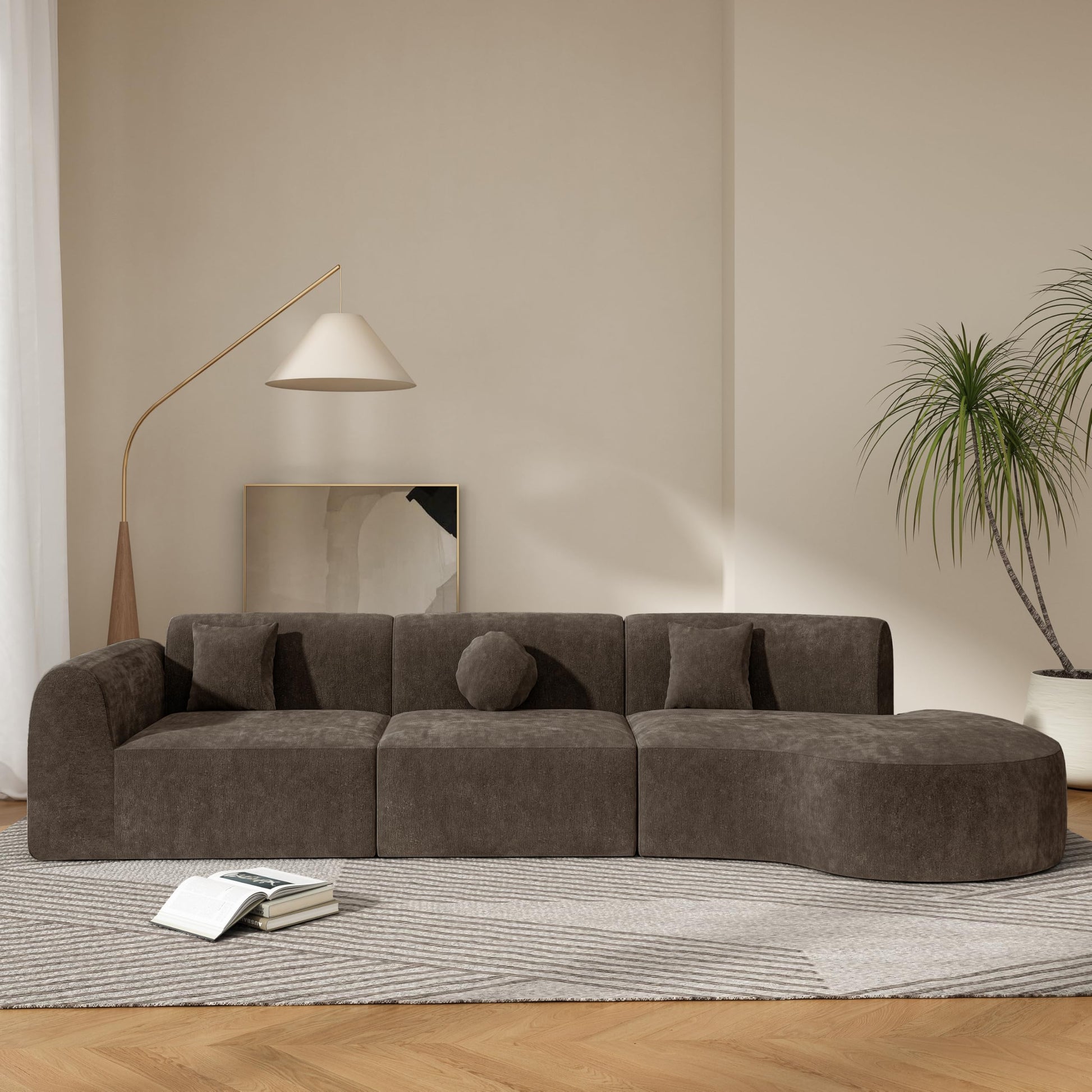 Merax 3-Piece 140" Curved Polyester Sectional Sofa Set, 7 Seat Modern Cloud Couch with Chaise Lounge,3 Pillows, Fully Assembled for Living Room, Dark Brown