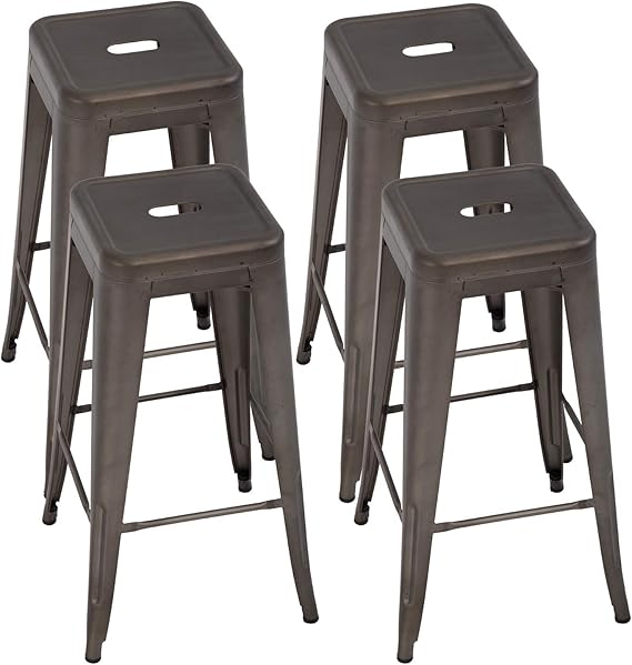 Metal Bar Stools Set of 4 - 30 Inch Counter Height Stackable Backless