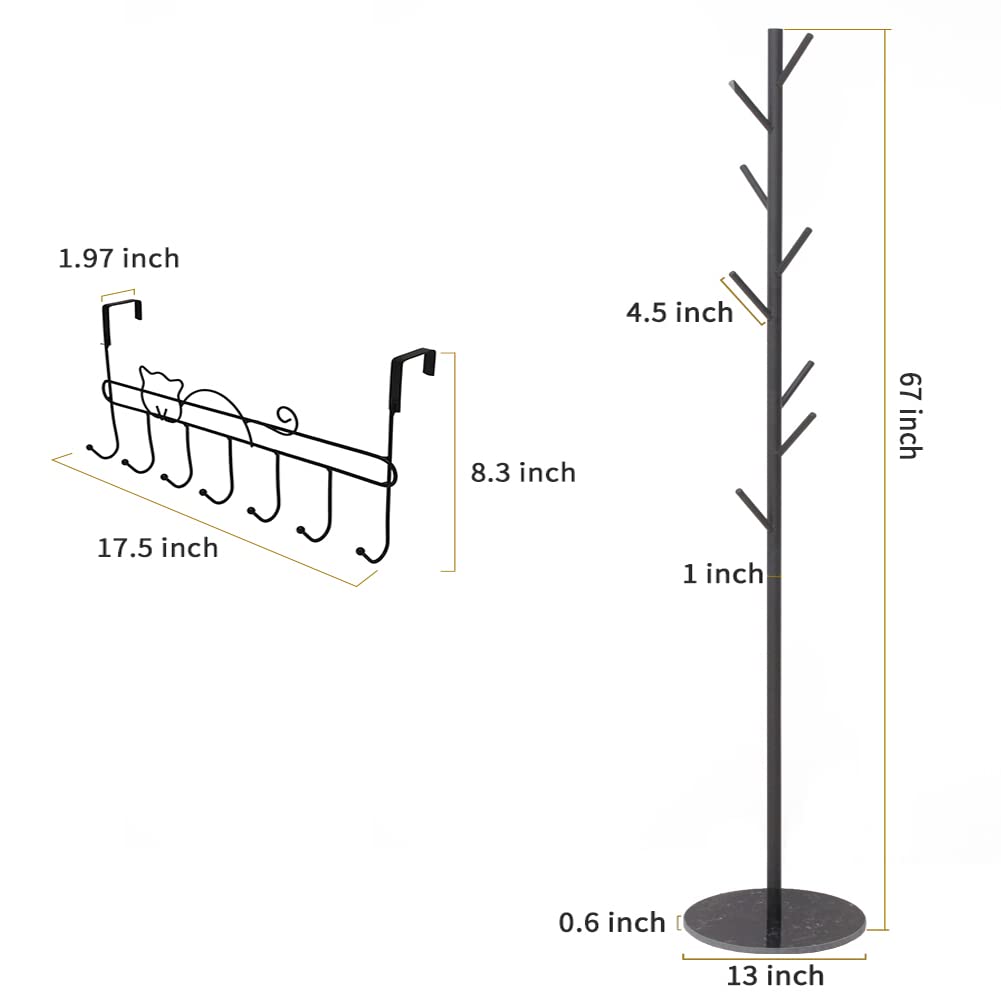 This freestanding metal coat rack combines sleek modern design with exceptional stability. The sturdy marble base ensures your coats, hats, and jackets stay securely in place, while the minimalist tree-style design complements any bedroom, office, or entryway décor.