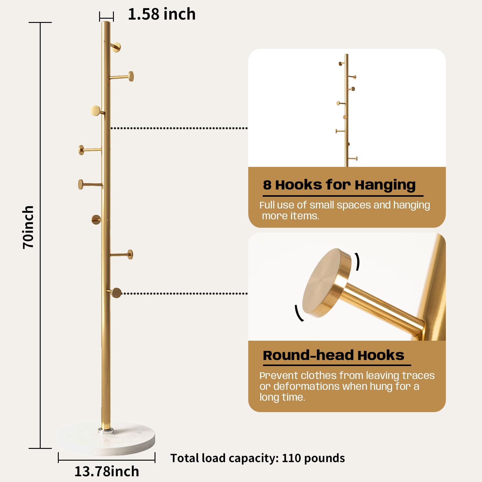 This coat rack stand combines functionality with premium materials, making it an ideal storage solution for any space. The heavy marble base ensures stability while the stainless steel construction guarantees years of reliable use.