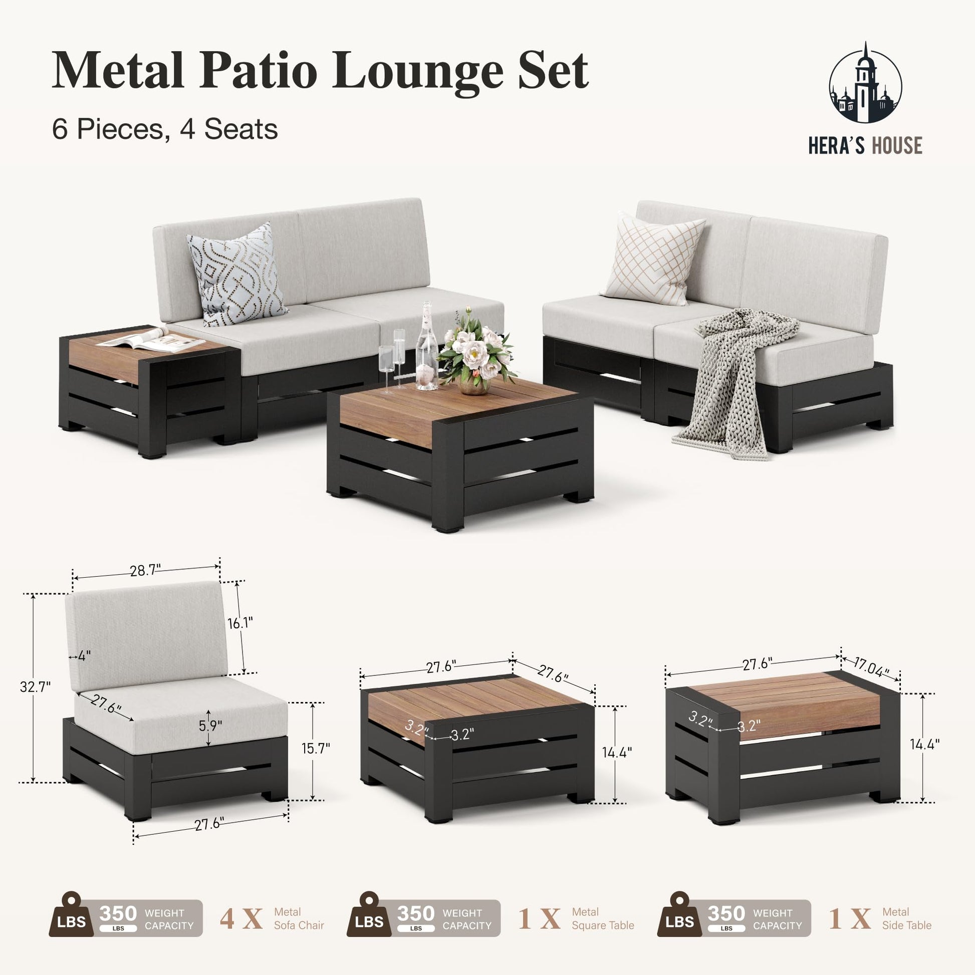 Metal Patio Furniture Set 6-Piece Outdoor Sectional Sofa