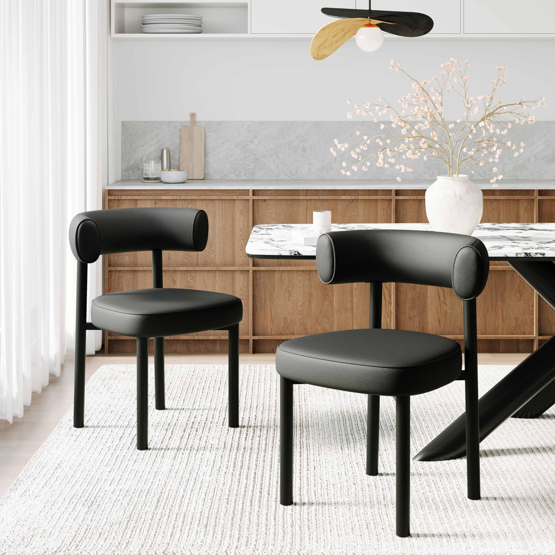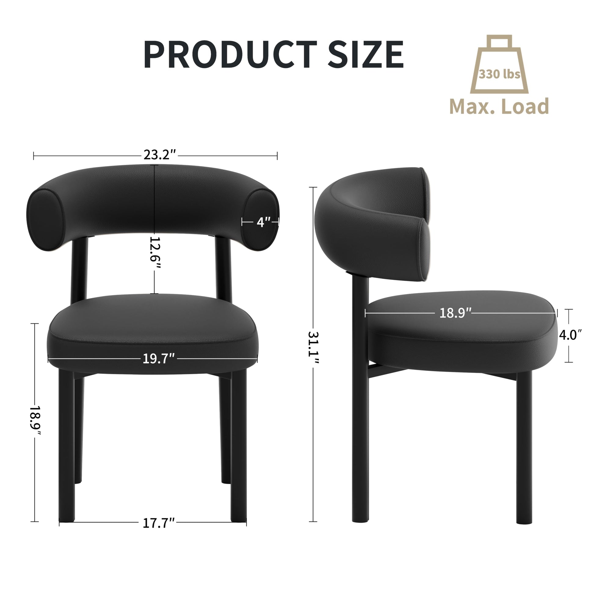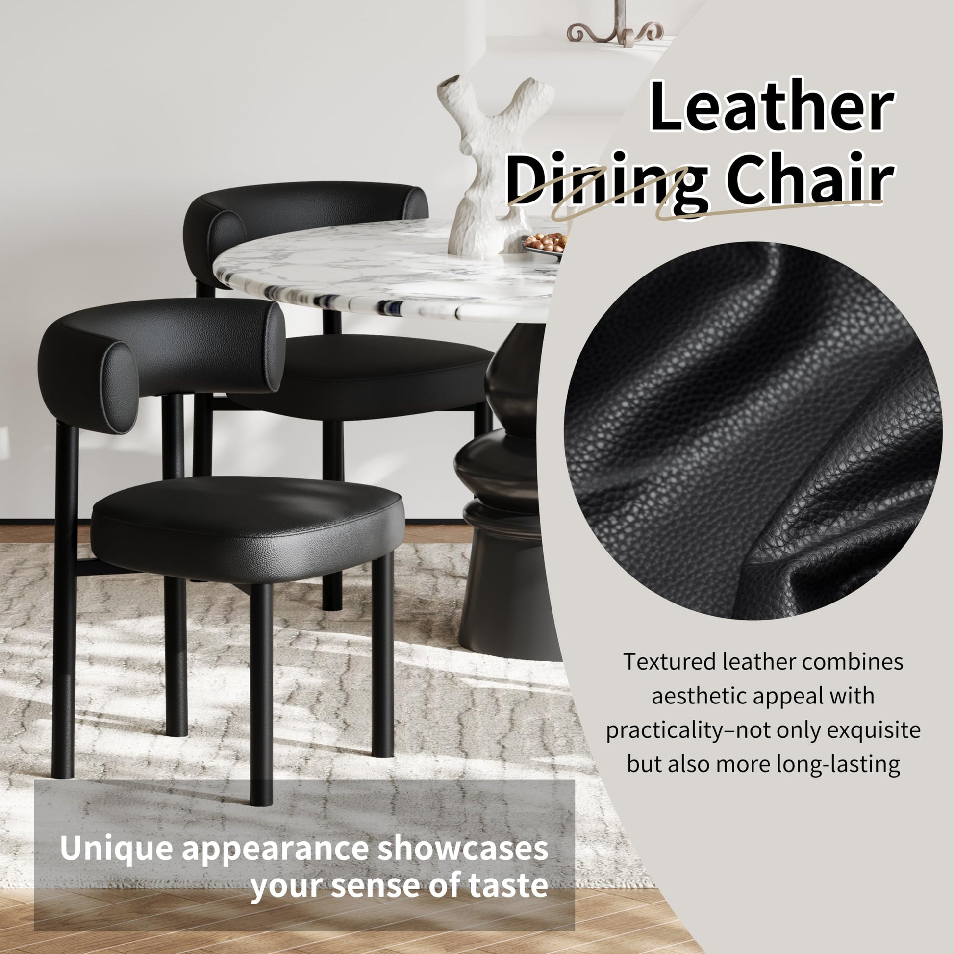 Elevate your dining space with this set of four mid-century modern dining chairs. Featuring ergonomic curved backrests and textured leather upholstered seats, these chairs combine comfort with contemporary style. The carbon steel legs provide exceptional stability and durability, making them perfect for kitchens, dining rooms, and restaurants.