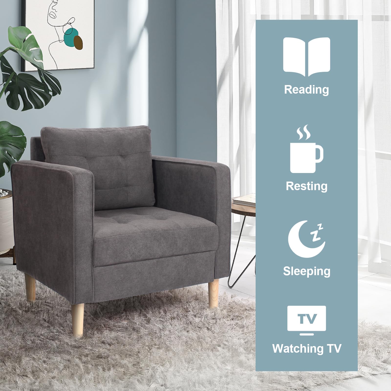 This versatile accent chair is perfect for living rooms, bedrooms, offices, reading nooks, and studio apartments. Its mid-century modern design complements both contemporary and traditional interiors, while the neutral grey color coordinates with any decor palette.