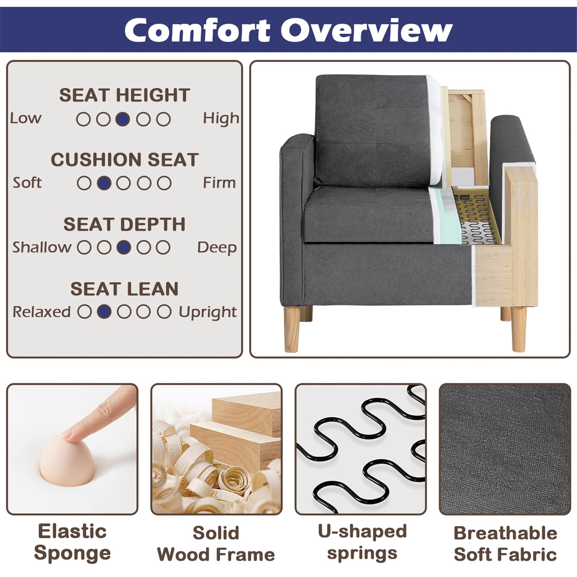This mid-century modern accent chair combines timeless design with contemporary comfort. Featuring a simple yet elegant grey upholstered fabric paired with solid oak legs, this armchair adds a sophisticated touch to any living space. The ergonomic design ensures optimal comfort for extended sitting, making it perfect for reading, relaxing, or entertaining guests.