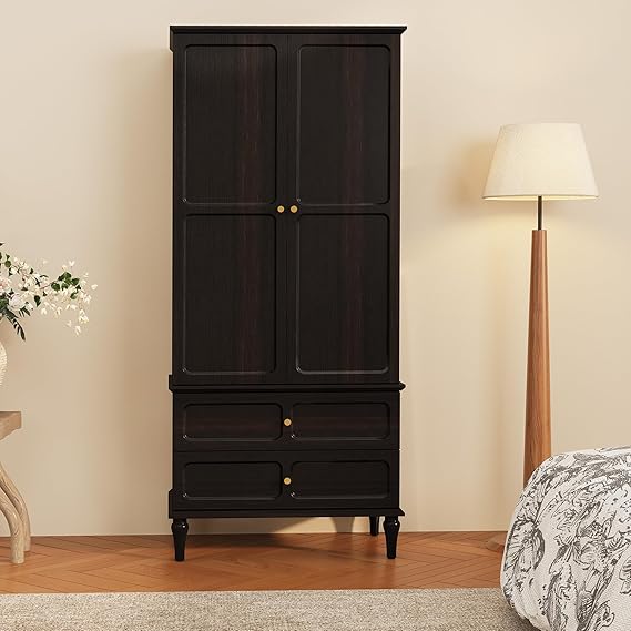 - Ample Storage Space: Equipped with a hanging rod and two large-capacity drawers for optimal bedroom organization