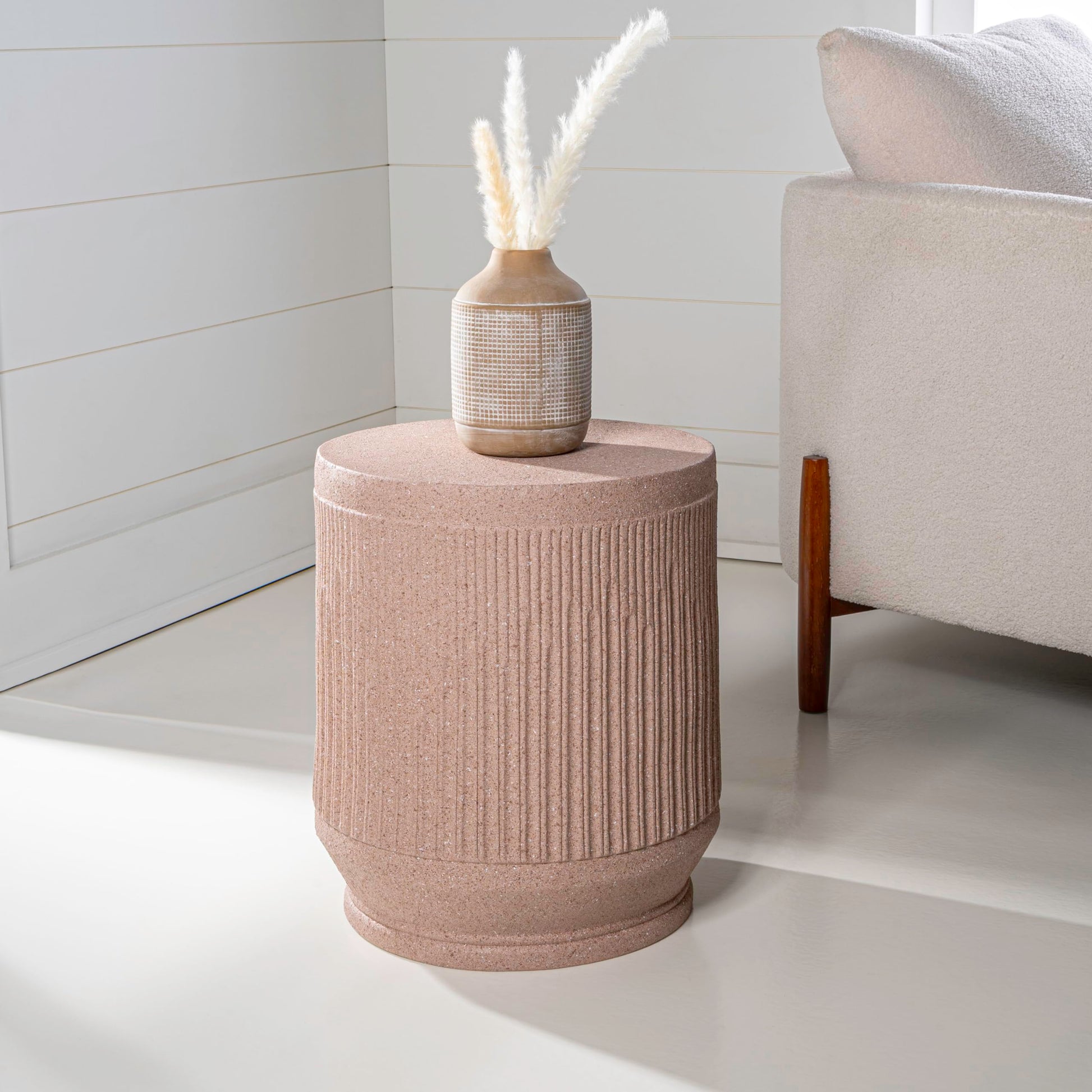 Elevate your space with this striking mid-century modern accent table featuring a distinctive brutalist design and pink terrazzo finish. Perfect for indoor and outdoor use, this versatile piece adds contemporary style to patios, gardens, bathrooms, and living rooms.
