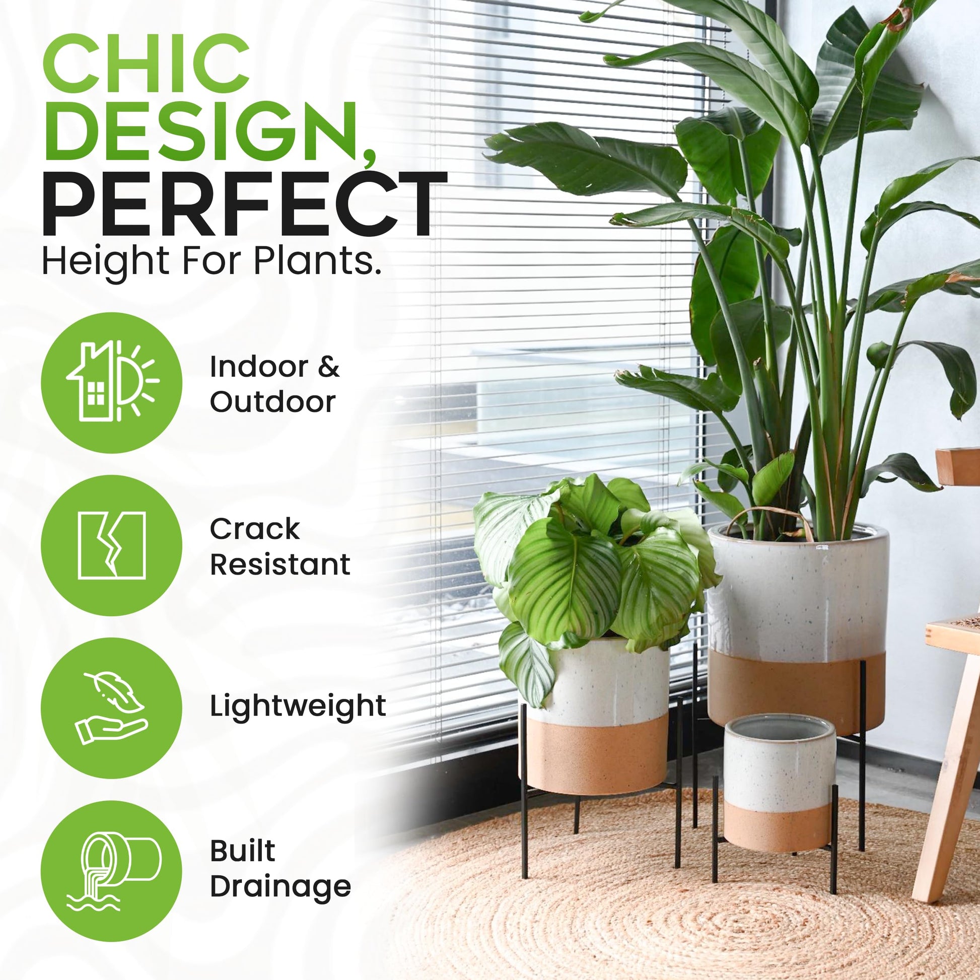 - Accommodates indoor plants 10-12 inches in size