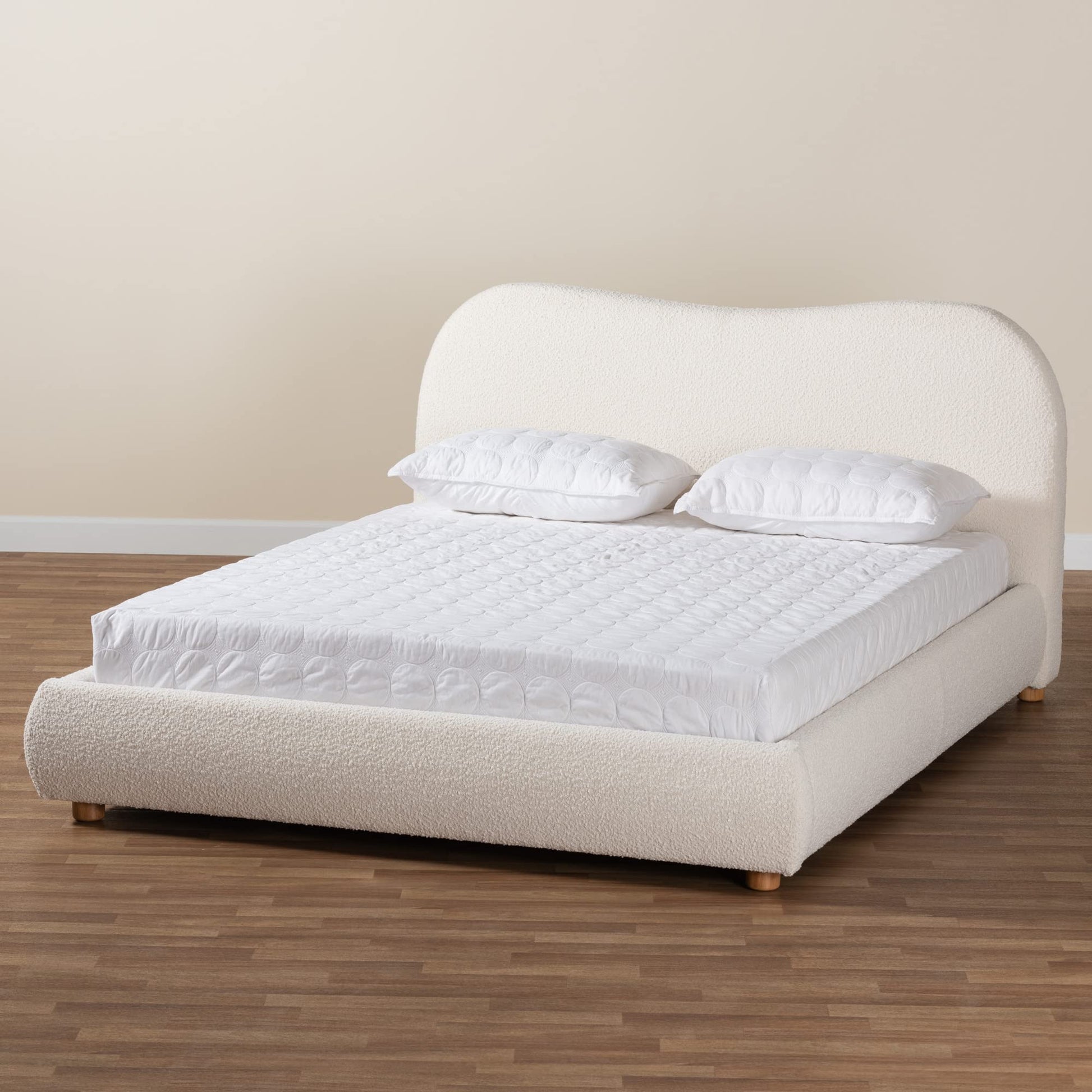 Mid-Century Modern Cream Boucle Platform Bed Queen